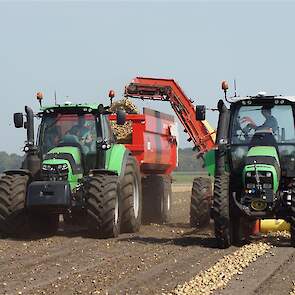 Uien laden met Deutz Fahr TTV's Grimme wagen rooier en Beco kippers