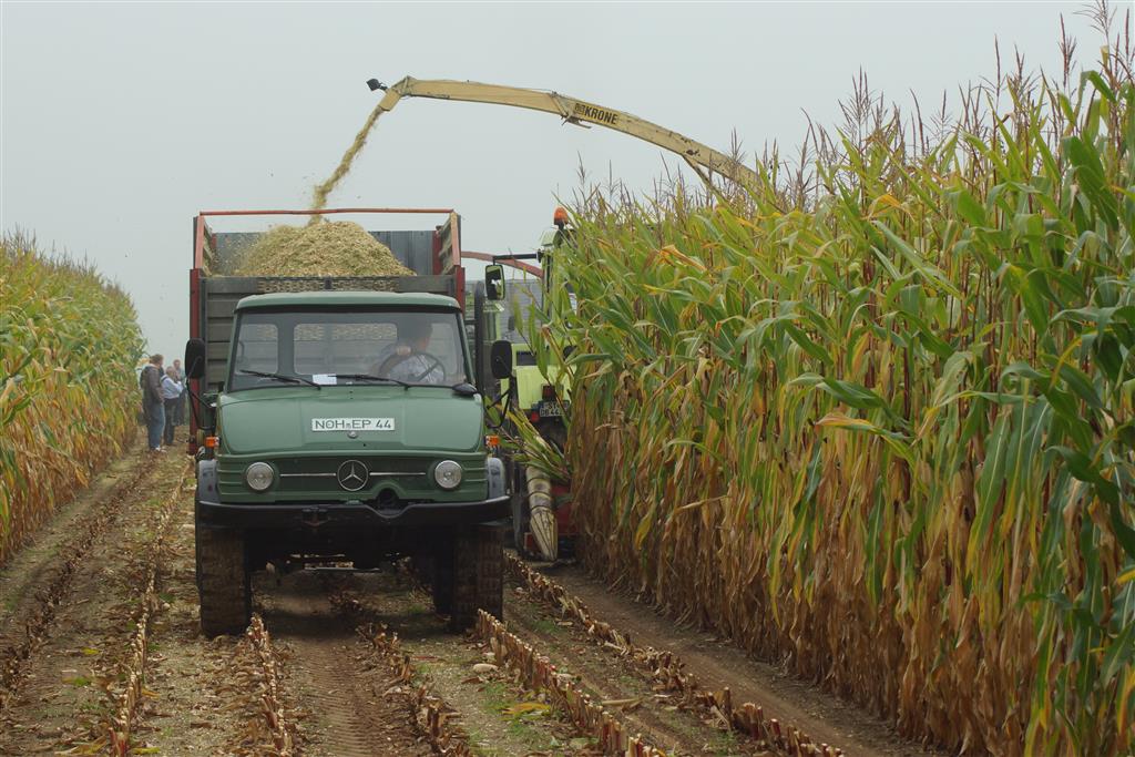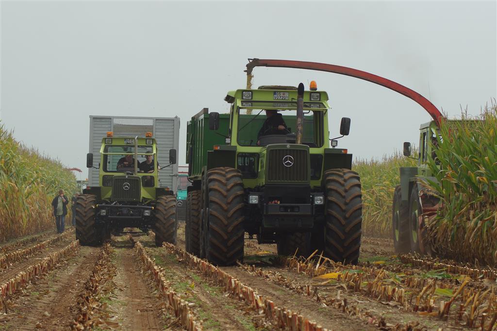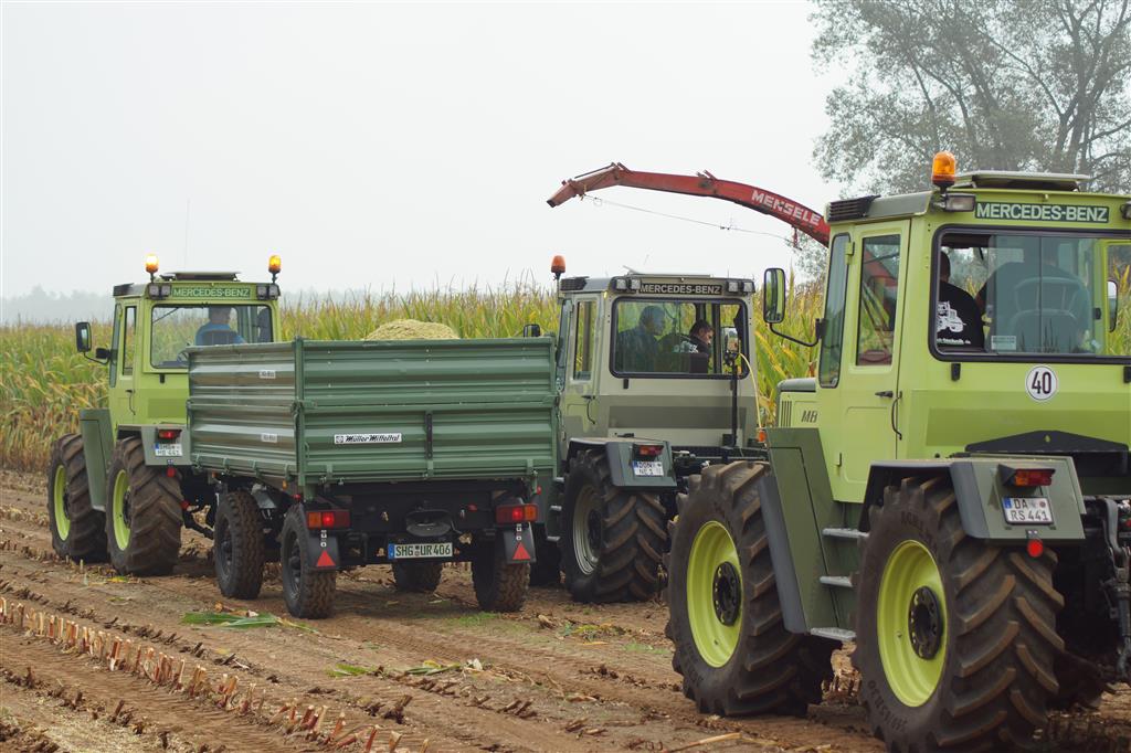 Mega maïshaksel festijn met MB-Trac's en Unimog in Nordhorn