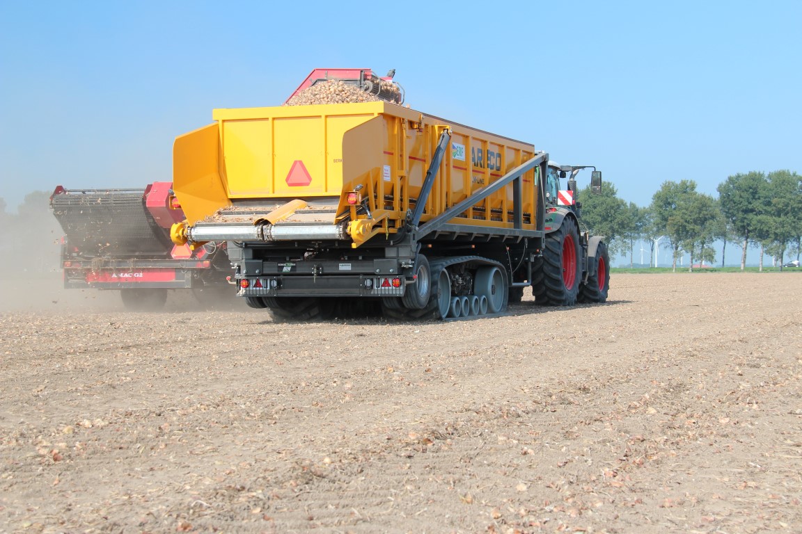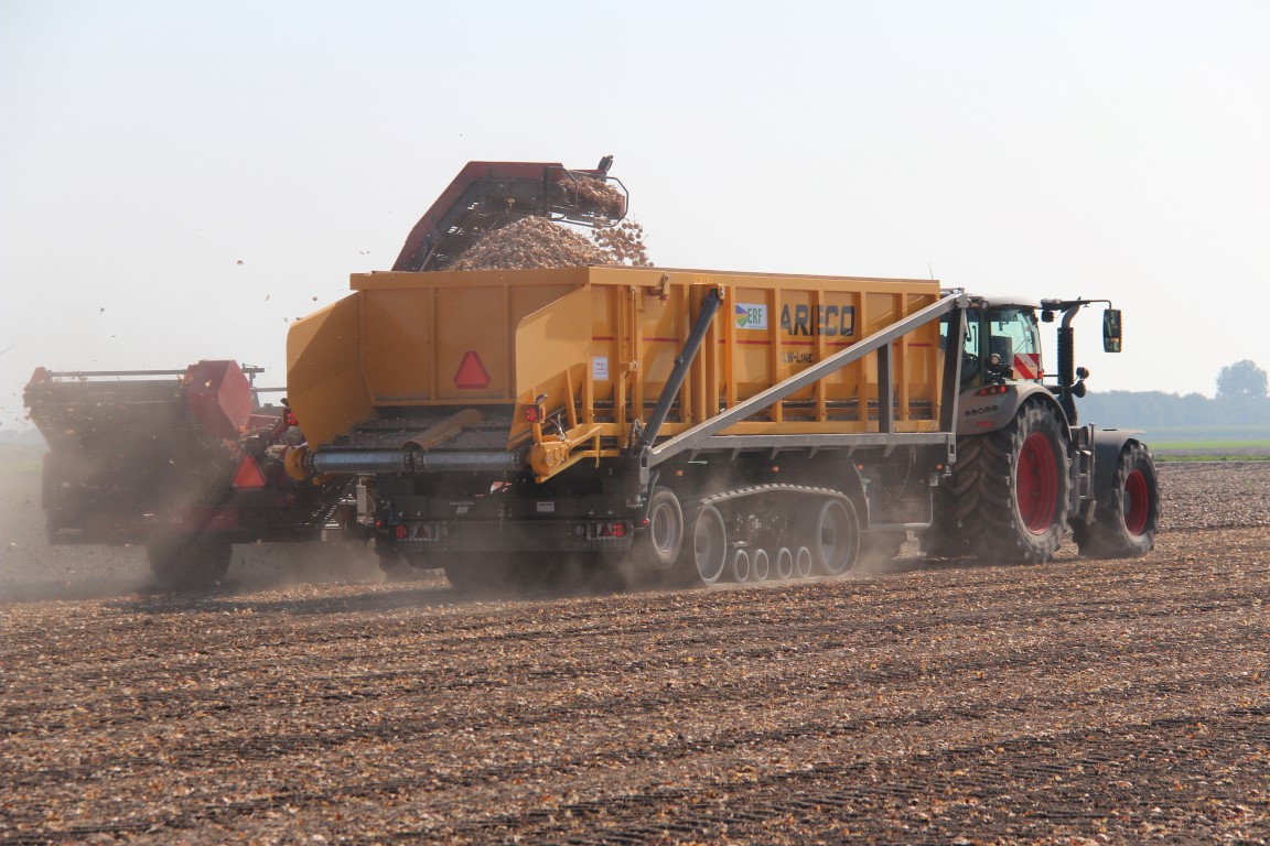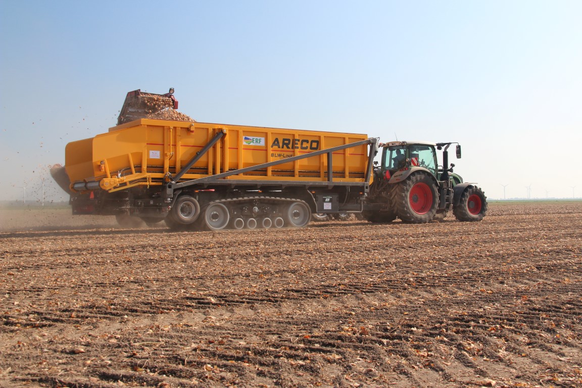Biologisch akkerbouwbedrijf ERF in Flevoland heeft een bijzondere en innovatieve Areco hooglosser. ERF schafte deze wagen aan vanwege de zorg voor de bodemstructuur en de verkeersveiligheid. Het Camoplast rusponderstel heeft een contactoppervlak van 5 m2. De verkeersveiligheid wordt gediend doordat de wagen op het veld blijft en zo de openbare weg niet vervuilt. De bak heeft een inhoud van 25 m3 en kan daarmee een vrachtwagen in twee keer laden. Behalve aardappels, uien en erwten wil ERF ook suikerbieten direct in de vrachtwagen laden. Er is verder ook een silageopbouw bij en omdat de bak met twistlocks op het onderstel staat, kan er ook een meststrooier opgebouwd worden. Op de weg loopt de wagen op het speciale transport wielstel.