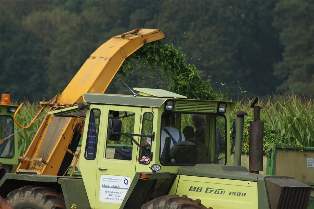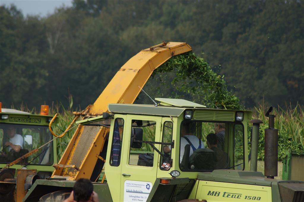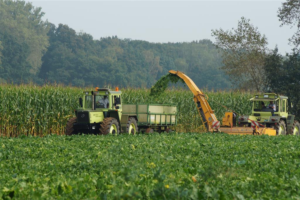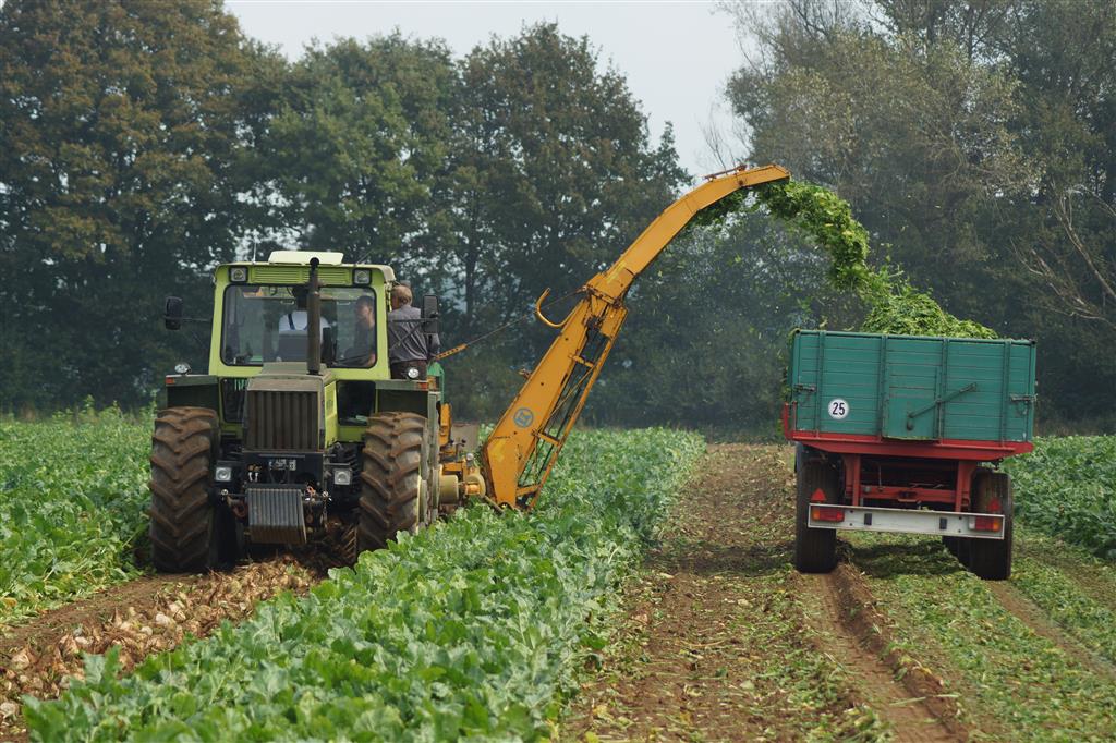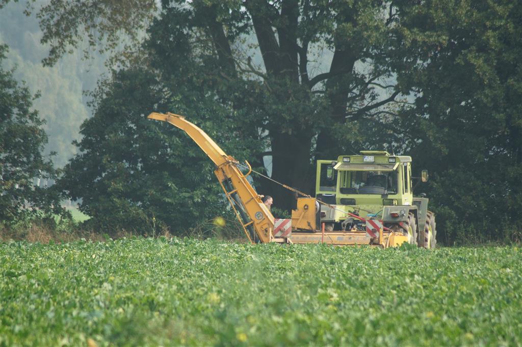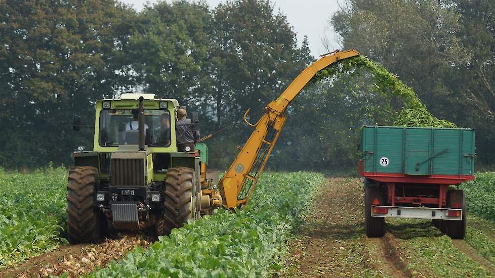 MB-Trac 1500 met kleine bietenrooier voederbieten rooien en blad verzamelen.