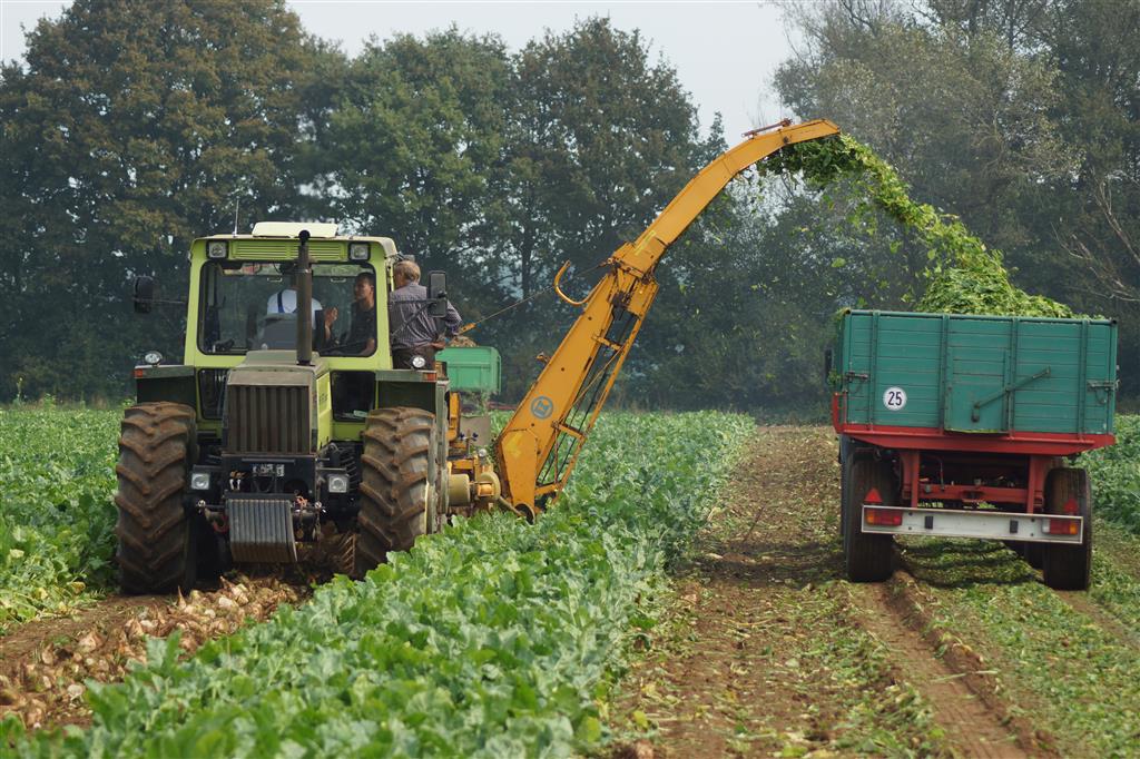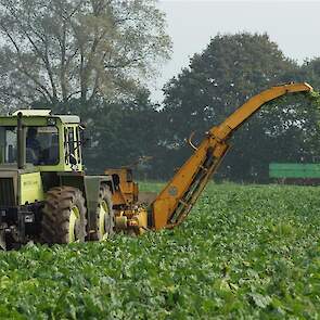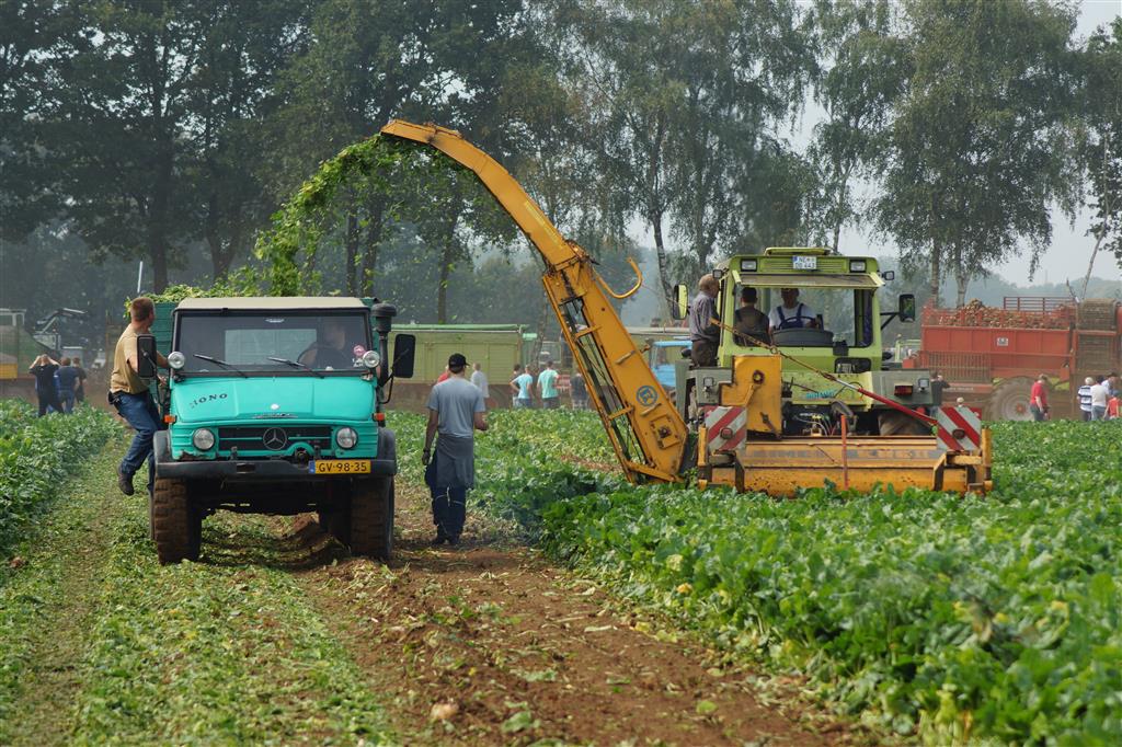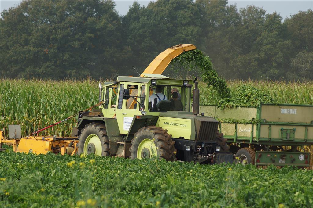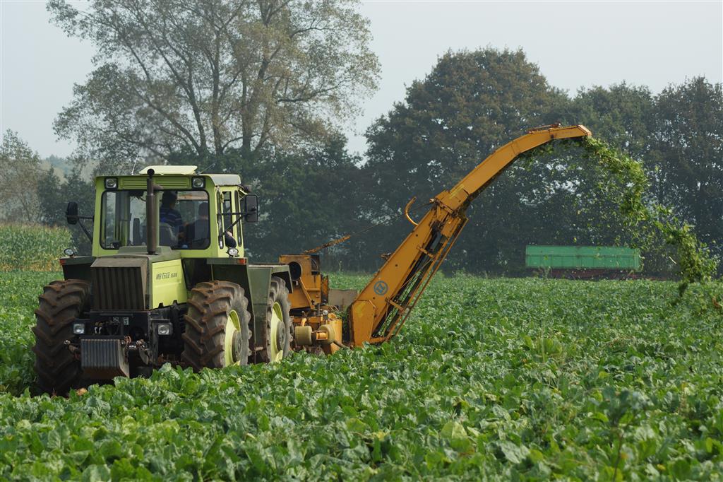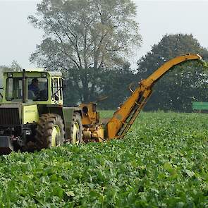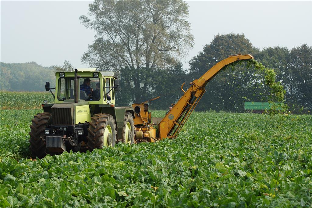 MB-Trac 1500 met kleine bietenrooier voederbieten rooien en blad verzamelen