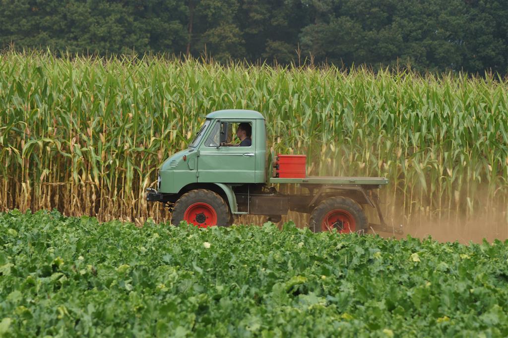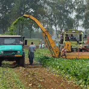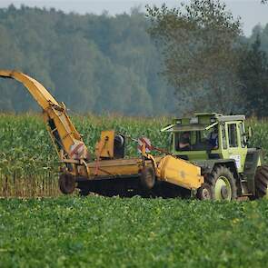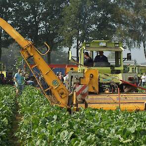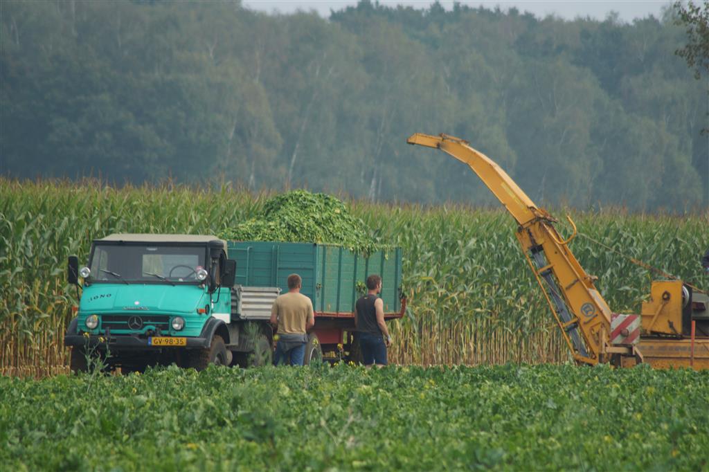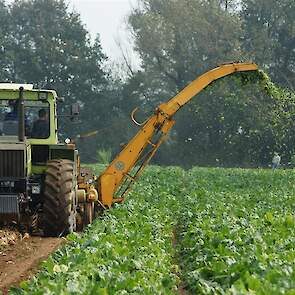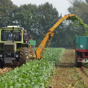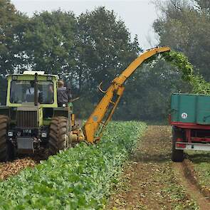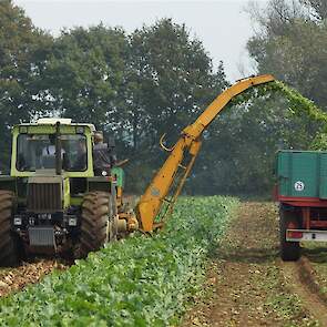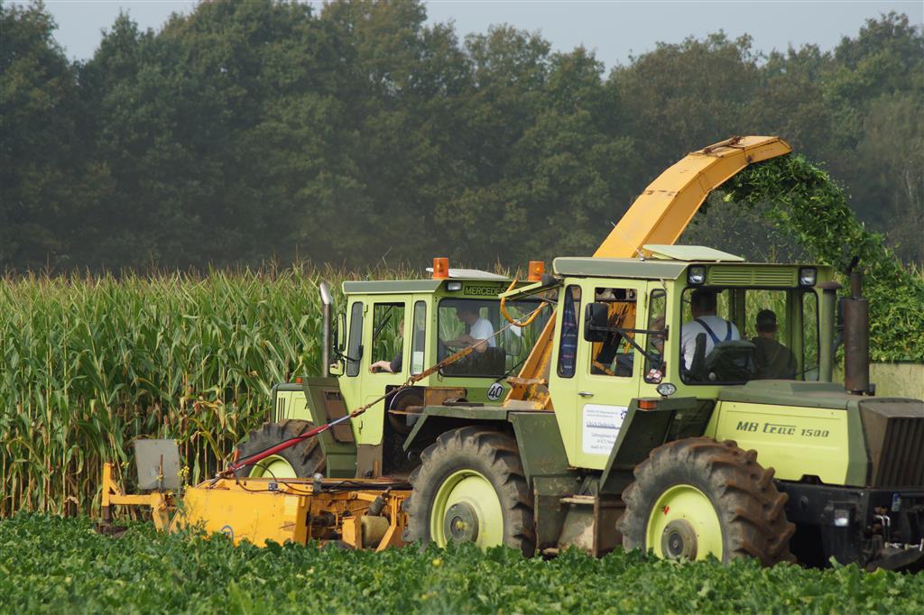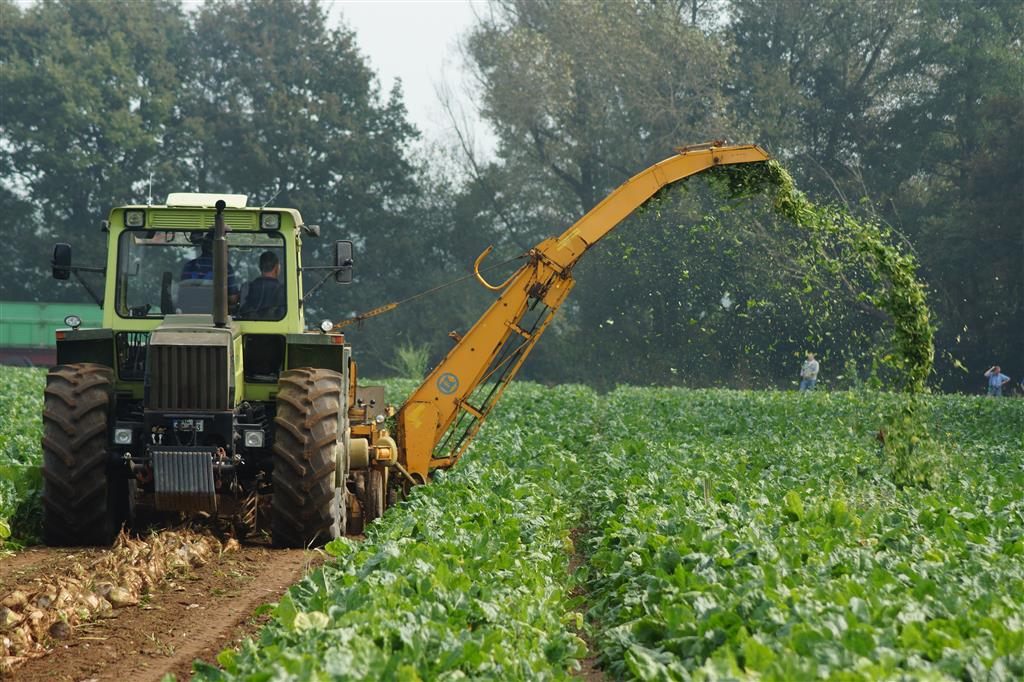 MB-Trac 1500 met kleine bietenrooier voederbieten rooien en blad verzamelen