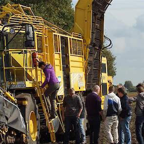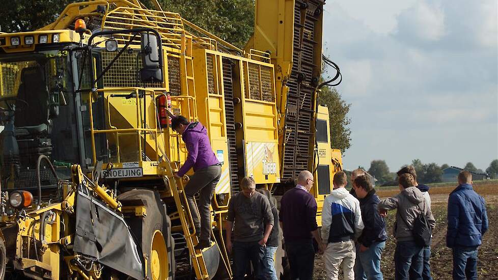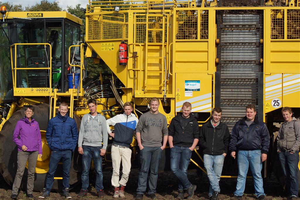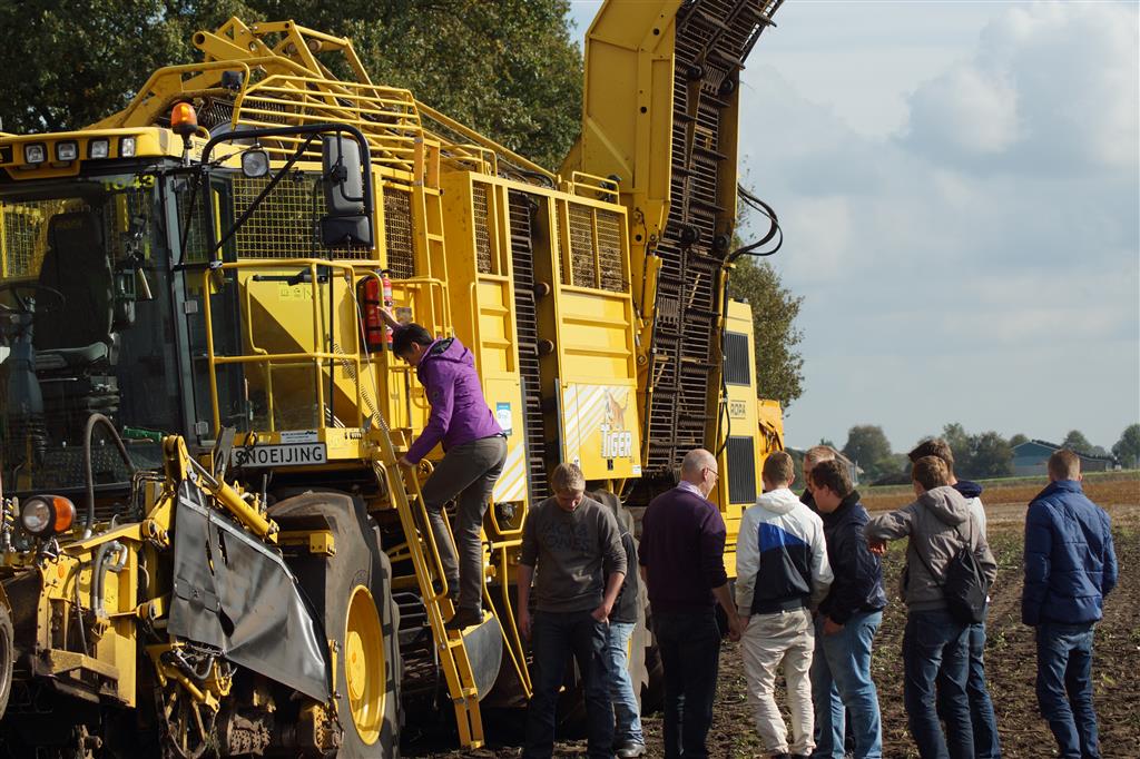 Complete klassen van de landbouwschool kwamen de rooimachine bekijken en bestuderen en voorzien van deskundig advies.