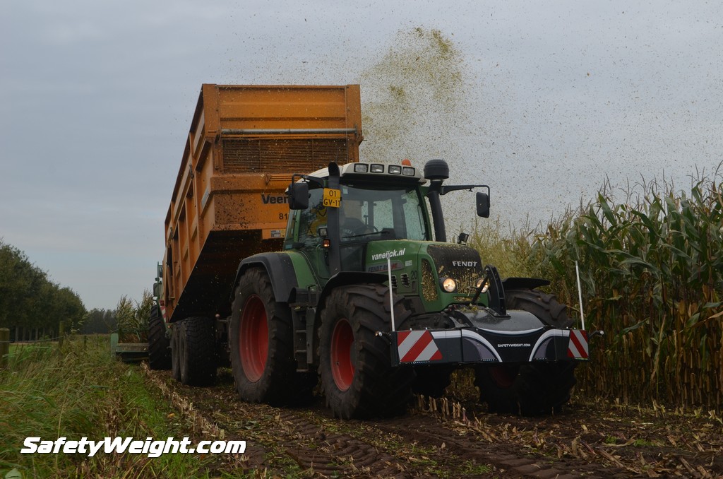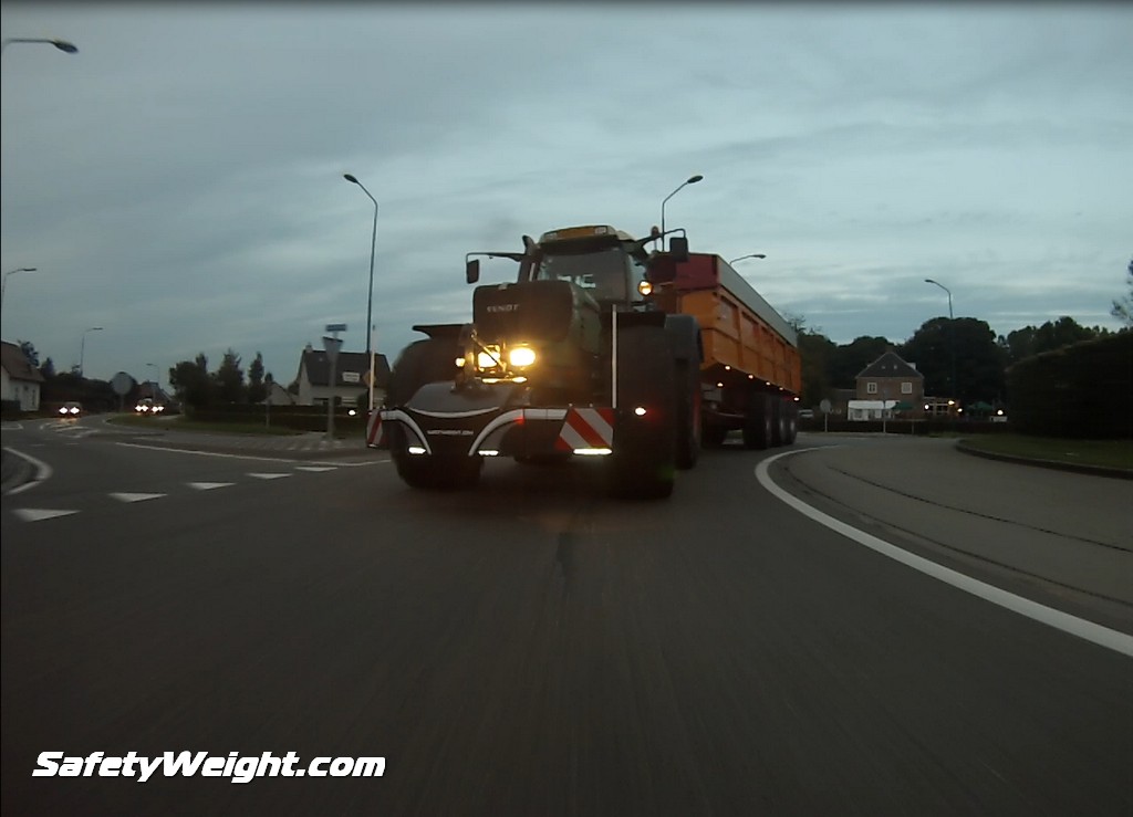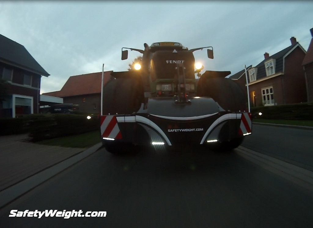 Nu de oogstwerkzaamheden druk bezig zijn en de dagen korter worden, is er veel landbouwverkeer op de openbare weg in het donker. Voor overige weggebruikers is het vaak lastig inschatten hoe breed een trekker is.Omdat veel trekkers gebruik maken van een gewichtsblok voorin de fronthef, heeft SafetyWeight een veilig frontgewicht. De functie van een gewichtsblok wordt behouden (600 tot 1200 kg), maar helpt ook meteen als afscherming van de voorwielen en heeft duidelijke verlichting.Hierdoor is het voor overige weggebruikers veel beter in te schatten hoe breed de trekker-combinatie is waardoor gevaarlijke situaties verminderd worden.