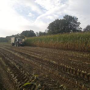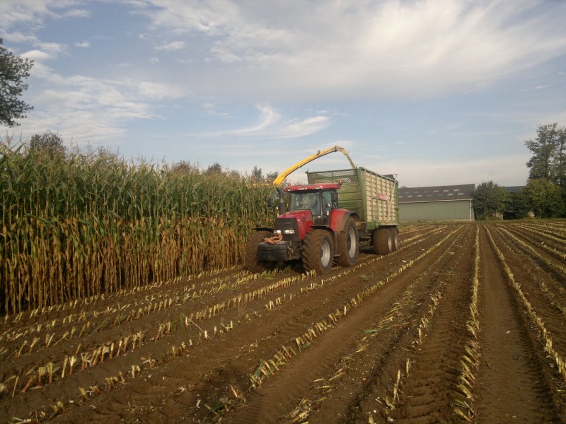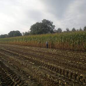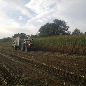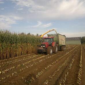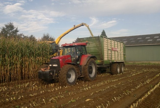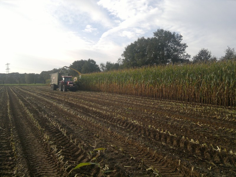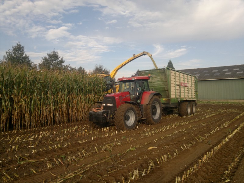 De mais op de foto is geoost bij HJ Veltkamp in Lochem door loonbedrijf Ten Hoopen uit Wierden.Ongetwijfed de langste mais van dit seizoen, ik heb niet eerder foto's gezien van mais die boven de cabine van de NH hakselaar uitstteekt aldus de inzender.