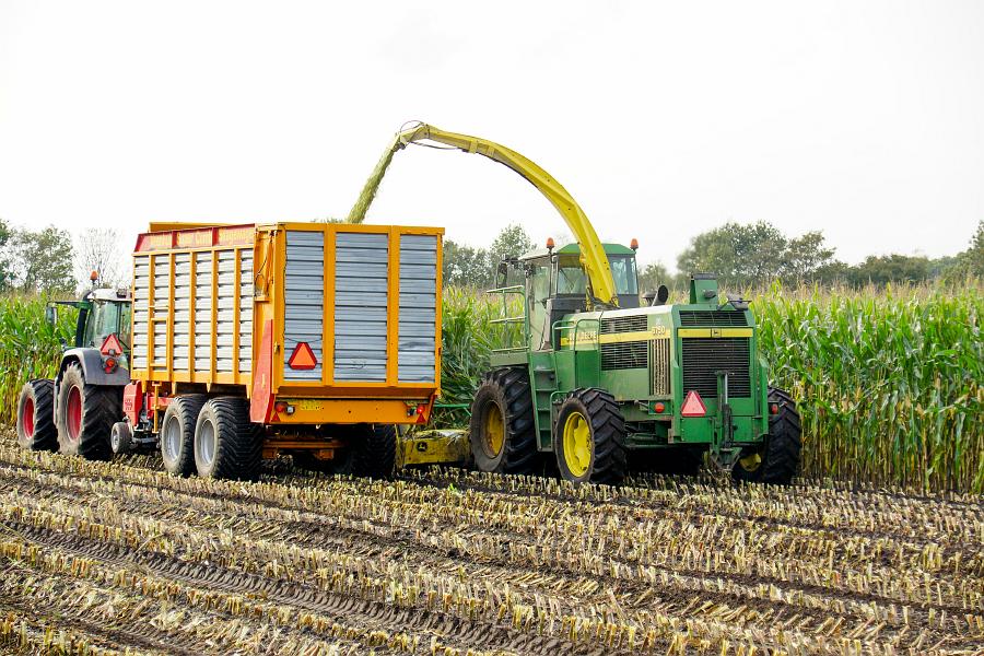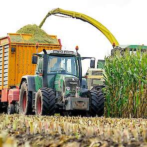 Loonbedrijf Vlastuin uit Ede in samenwerking met loonbedrijf Ploeg aan het hakselen.