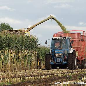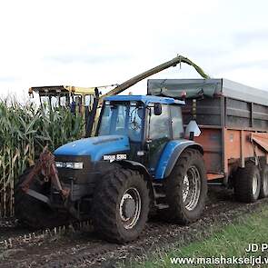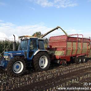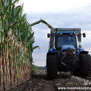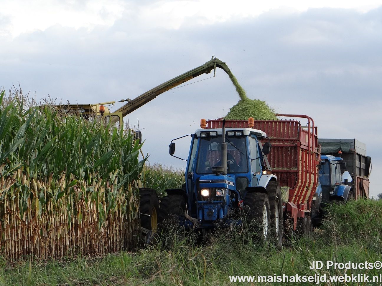 Melkveehouder van de Streek uit Nunspeet aan het maishakselen met een New Holland 1900, New Holland 8360, Ford 6810, New Holland M100 en een Ahlmann AL7D.