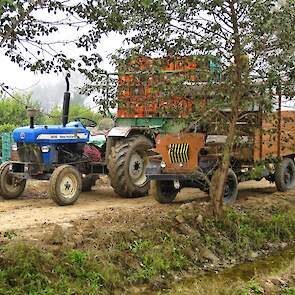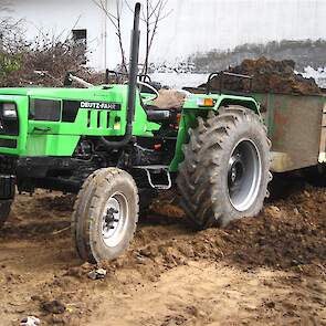 Grond en mesttransport met Mahindra en Deutz in India deel 2