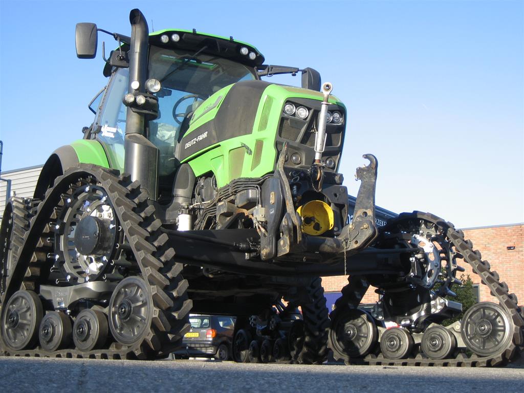 Deze week heeft de Vlaming Groep B.V. een Deutz T7250 op 30 cm Soucy tracks S-TECH 612 op spoorbreedte 3 meter afgeleverd. Hiervoor hebben ze een subframe onder de trekker gemaakt waar de onderwagens aan gemonteerd zitten opdat je een spoorbreedte van maximaal 3,2 meter kan rijden.De vooras is verbreed naar 2,7 meter spoorbreedte. Van hieruit zijn de onderwagensteunen aan de beide fuseehuizen gemonteerd.
