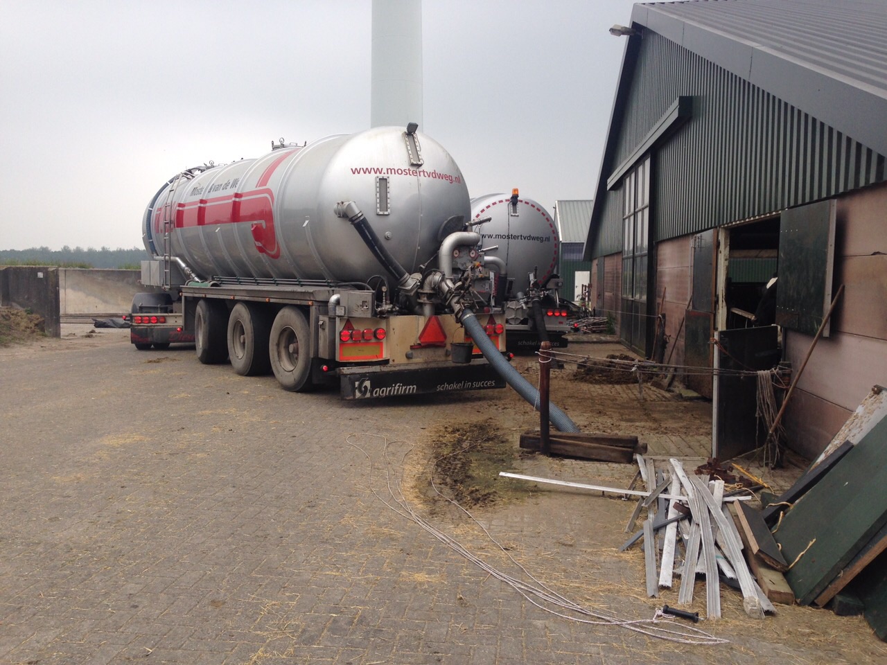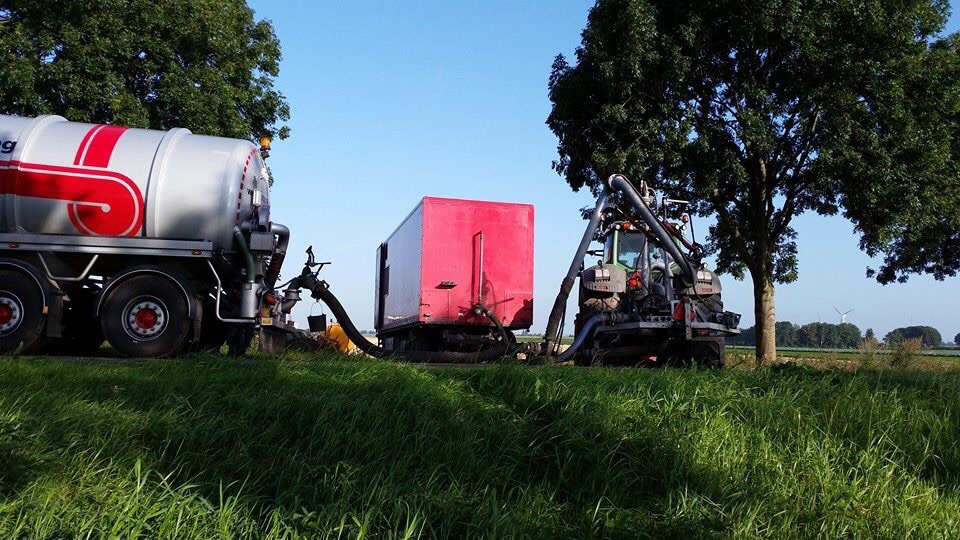 Ze zijn met 2 combinaties aan de gang in de Flevopolder en omstreken , mesttransport word verzorgd door Mostert van de Weg