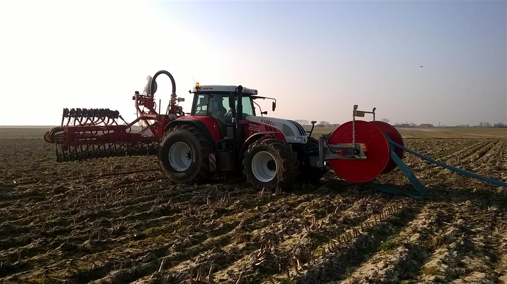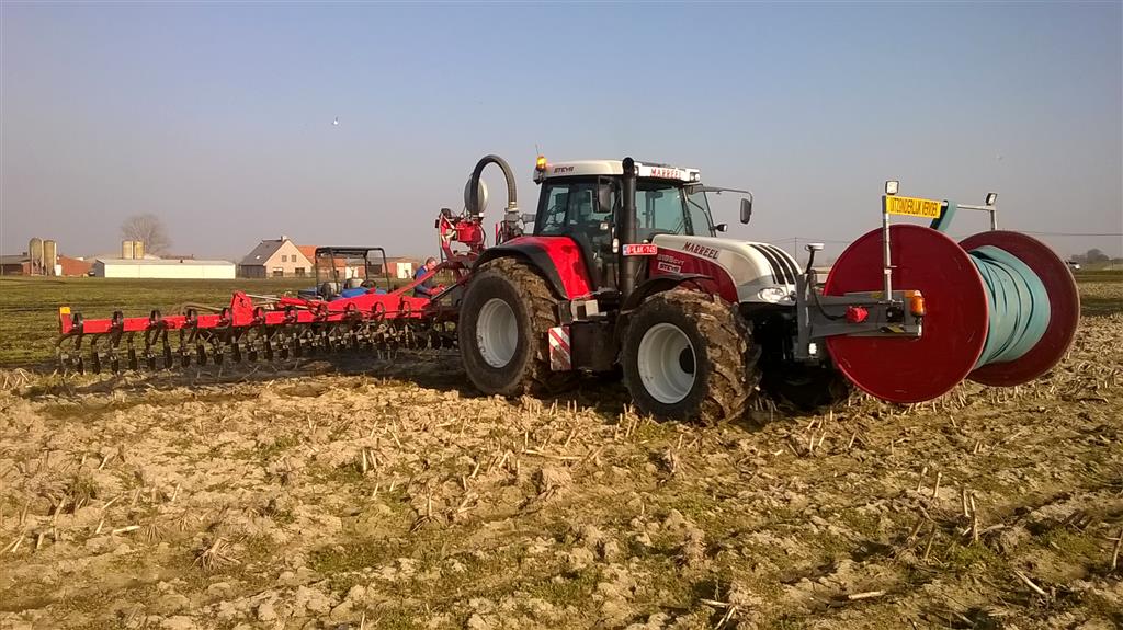 Loonbedrijf Marreel uit Diksmuide (België) is alweer vlot het mestseizoen ingegaan.Hierbij wordt gebruik gemaakt van een Steyr 6195 CVT waar de bemester en de slangenhaspels aan bevestigd zijn en een Steyr 6175 CVT die instaat om de Roelama pompwagen aan te drijven.Ook staat de New Holland Rustler steeds klaar om als werkpaard ingezet te worden, bijvoorbeeld bij het rechttrekken van de slangen.