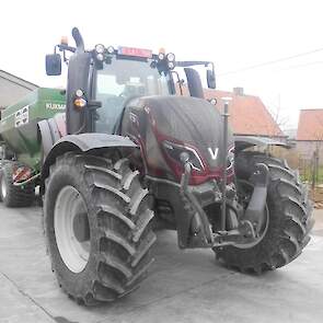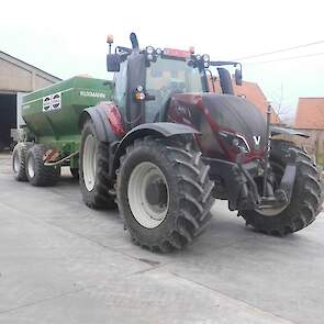 Valtra T194 bij loonwerker Decrock uit Watou Belgie. Nog maar pas geintroduceerd en nu de eerste al in actie in Belgie