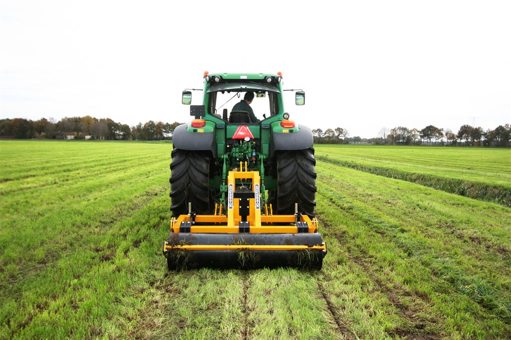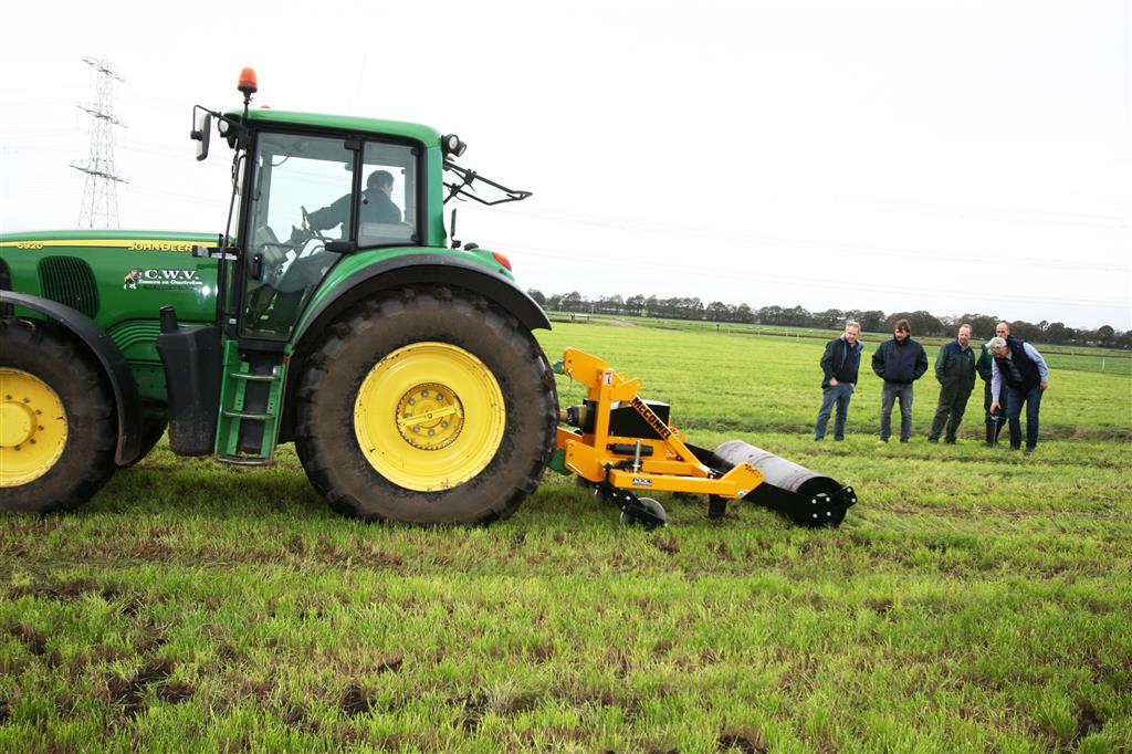 was er van verdichting nauwelijks sprake. De Shakaerator grasland-cultivator werkte ronduit goed waarbij het de aanwezigen opviel dat er geen schade aan de grasmat ontstond en bovendien van rugvorming geen sprake was. Op verzoek van de aanwezigen werd daarom een uitdagender perceel opgezocht. Het tweede deel van de demo vond plaats op een aangrenzend perceel met een rijpad wat al langdurig door silagewagens/opraapwagens was bereden. Aanvankelijk leek het even alsof de Shakaerator zich met dermate zwaar verdichte bodem geen raad wist waarbij de grasmat rolde. Na het verlagen van de werksnelheid bleek echter dat zelfs in deze zwaar verdichte klei de Shakaerator prachtig mooi werk leverde.