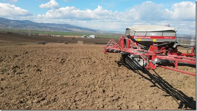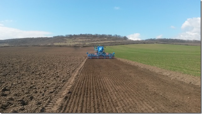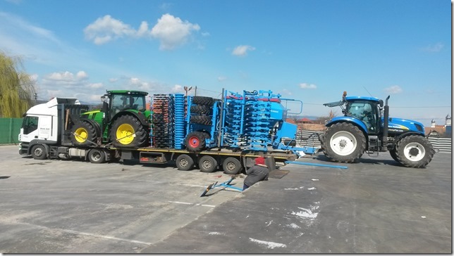 De John Deere 7310R met een Lemken Compact Solitair 9 wordt ingezet in Roemenië voor het zaaien van 400 hectare hennep,verder op de fotos op de achtergrond de nieuwe HempFlax fabriek de hijskraan van het bouwbedrijf wordt ff goed onder handen genomen en een New Holland Tm 165 met Kongskilde winjet 4024 aan het kustmeststrooien.
