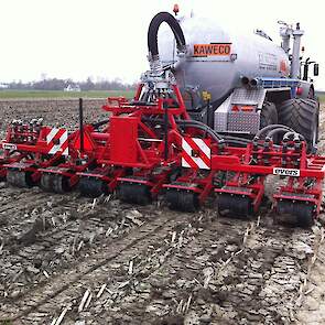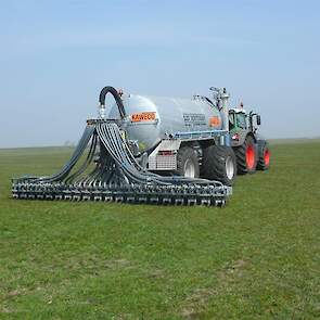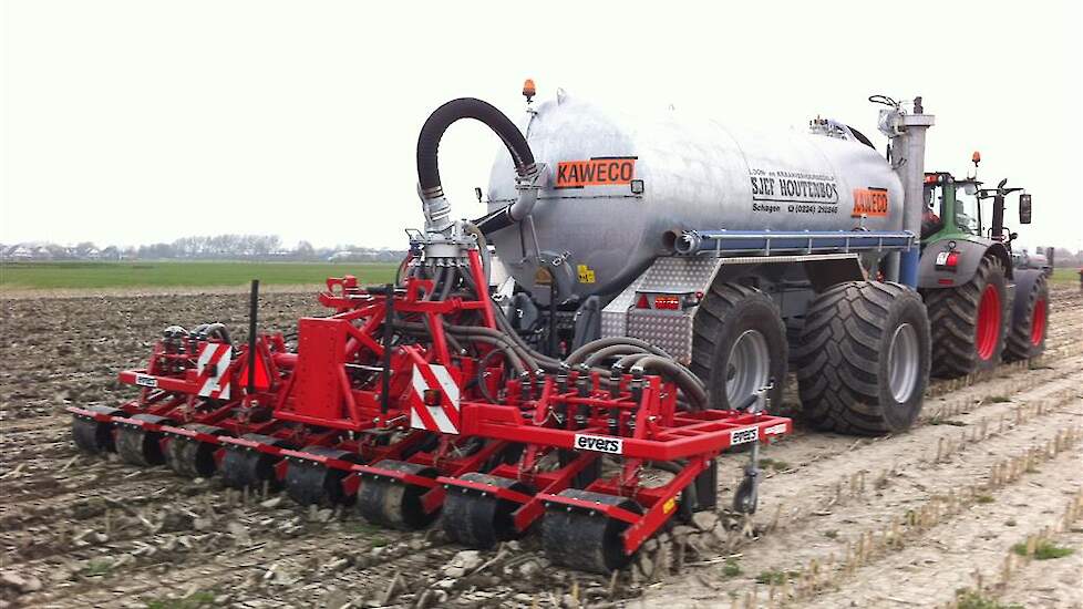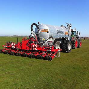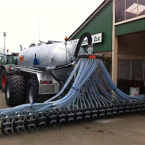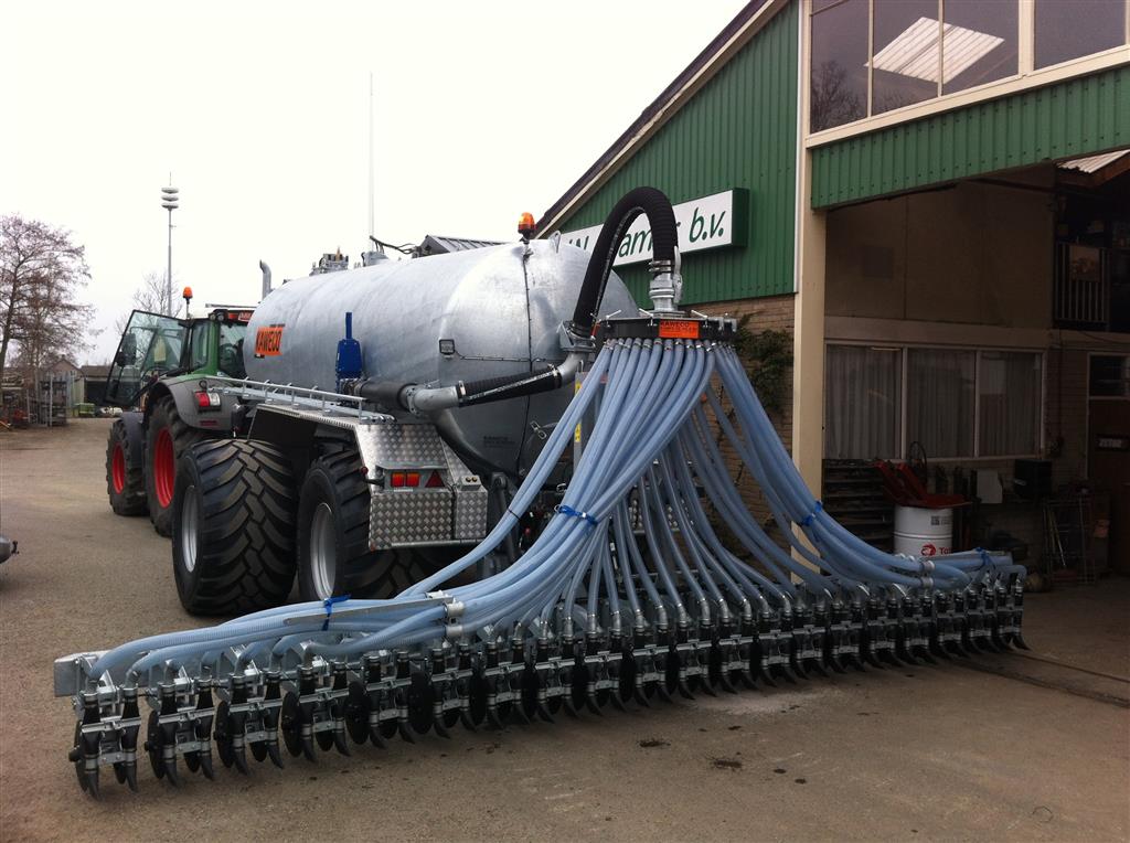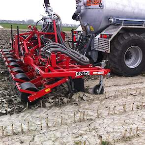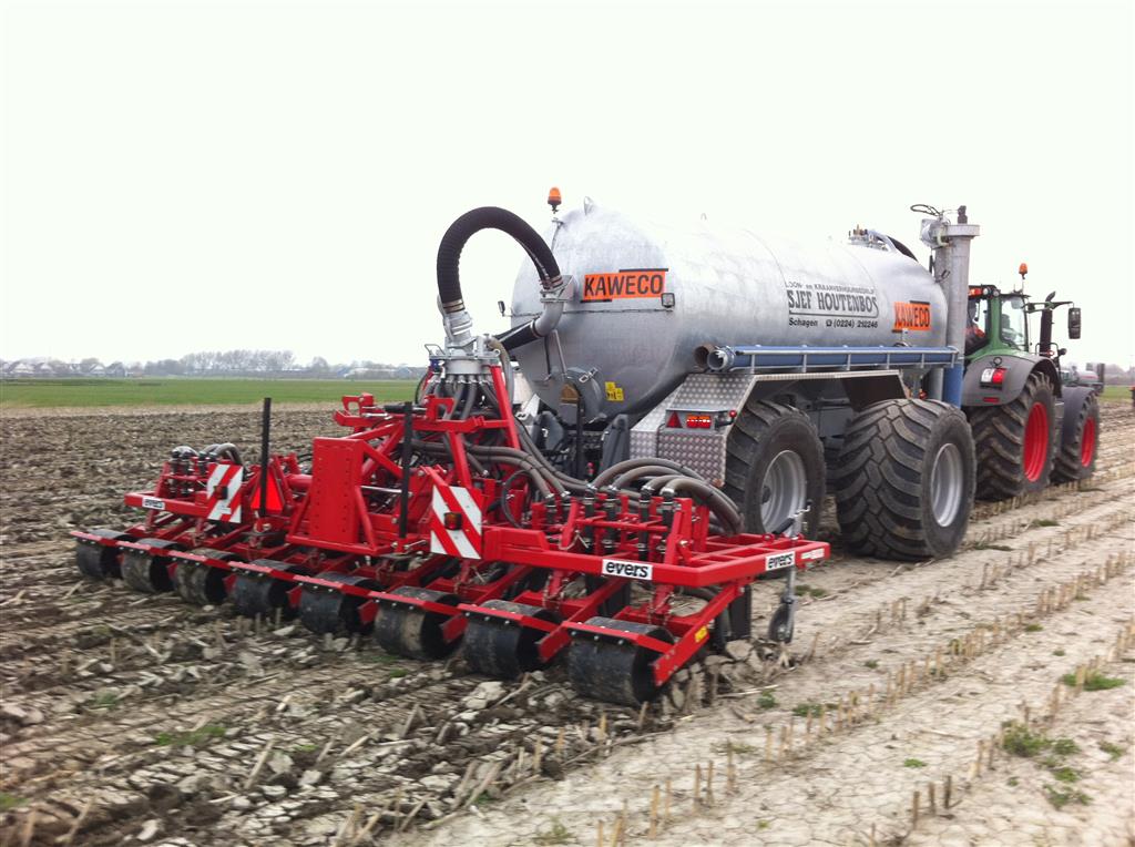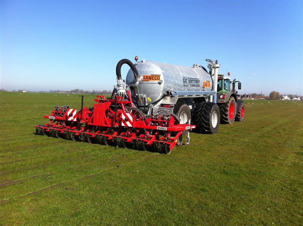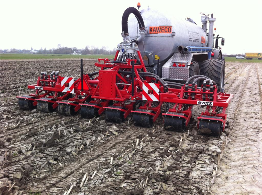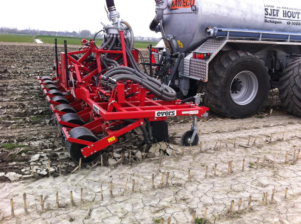 Daarbij is een EVERS rijenbemster afgeleverd. Plaatsspecifiek mest toedienen met deze strokenbemester. De bemester is 6 meter breed en om de 75 cm een woelpoot met daarbij mestinvoer op diepte. Deze EVERS is ook beschikbaar voor sleepslangen.