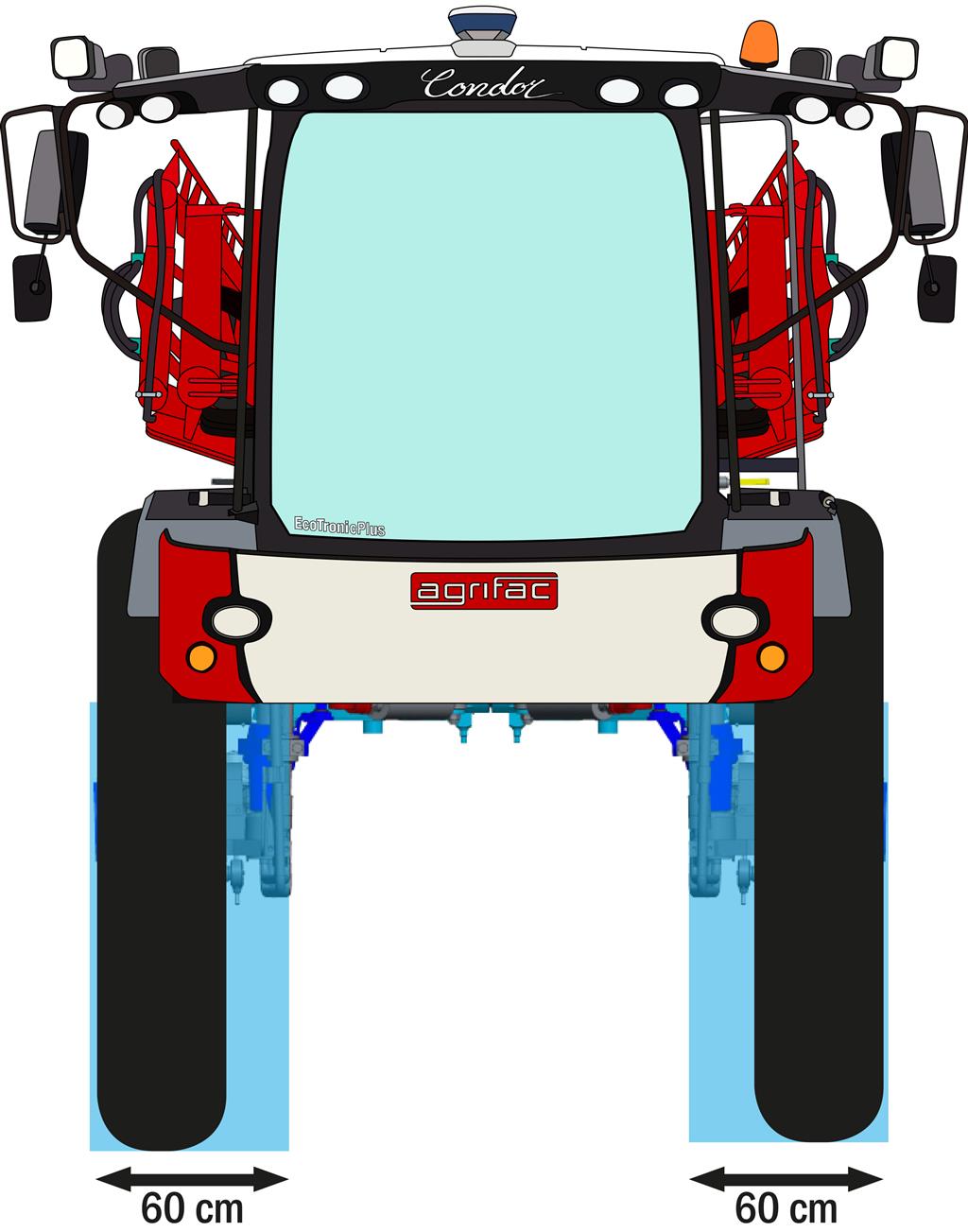 Naast de grootste bodemvrijheid biedt Agrifac ook de oplossing voor maximaal gebruik van uw areaal. Door de smalle constructie van de in hoogte verstelbare wielophanging (= tandwielkast + fusee) is de machine ideaal voor het gebruik in mais en zonnebloemen. Met een maximale breedte van 60 cm van de wielophanging voorkomt u dat planten geraakt worden. Een gezond en onbeschadigd gewas is de eerste succesfactor voor een goede oogst. (Agrifac is hierin uniek. Ter vergelijking de concurrentie werkt met wielophangingen die wel tot 66% breder zijn!)