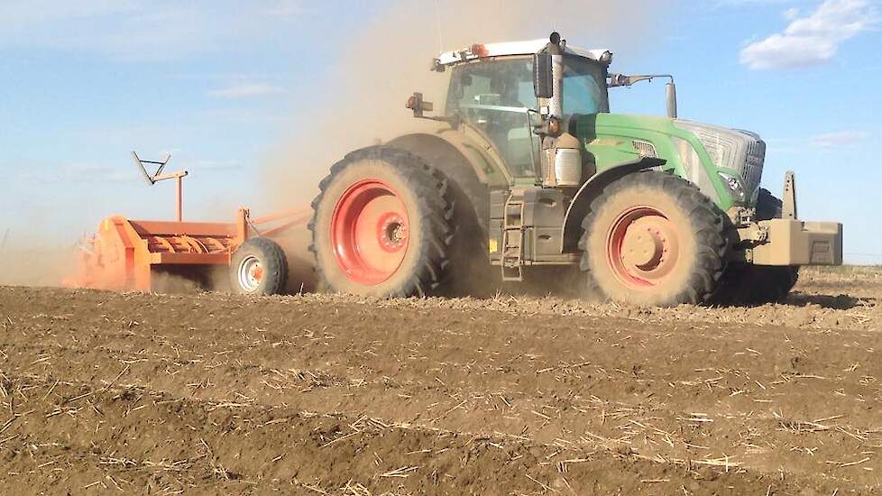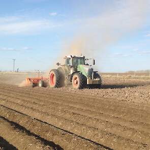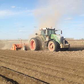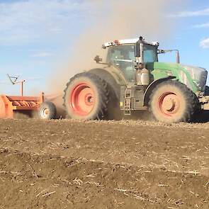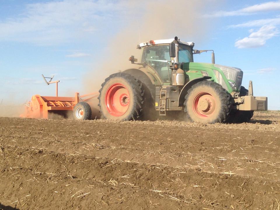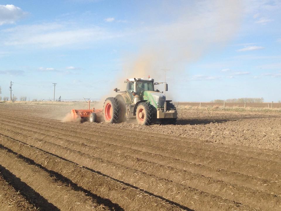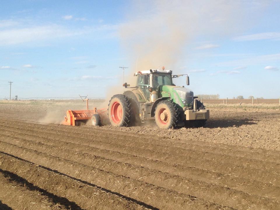 Fendt Profi 933, 8 rijige Struik frees in Canada Bij CP farms in Taber AB, Canada. Michiel Buijsse is de chauffeur.tevens nog een Challenger rupstrekker aan het aanruggen met een Spudnik en een Massey Ferguson 8670 aan het poten met een Spudnik pootmachine