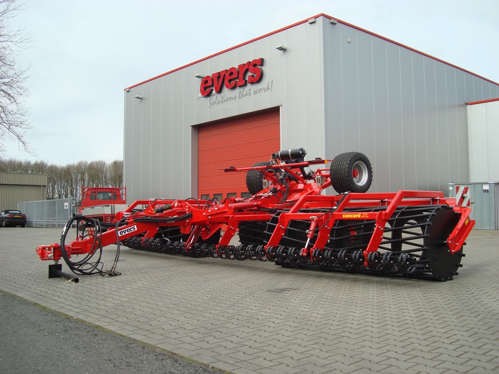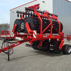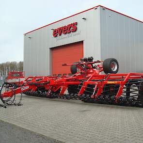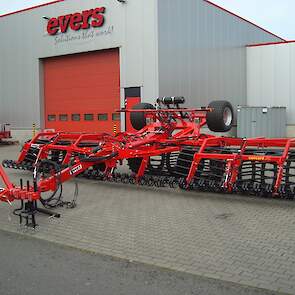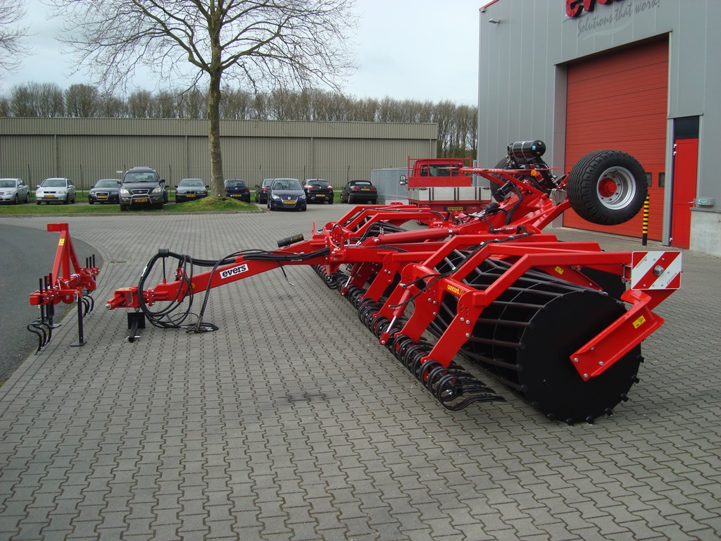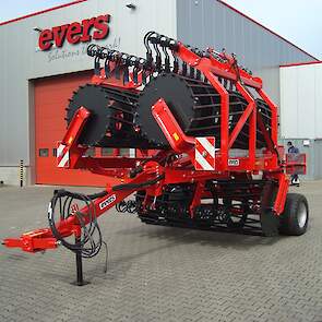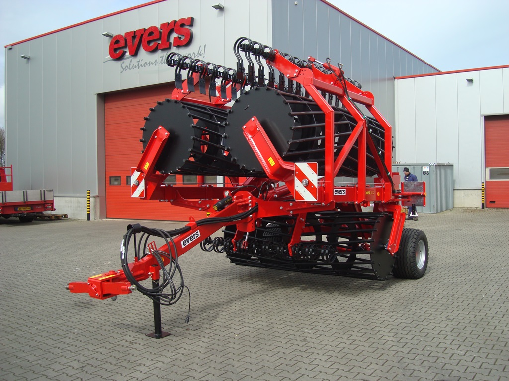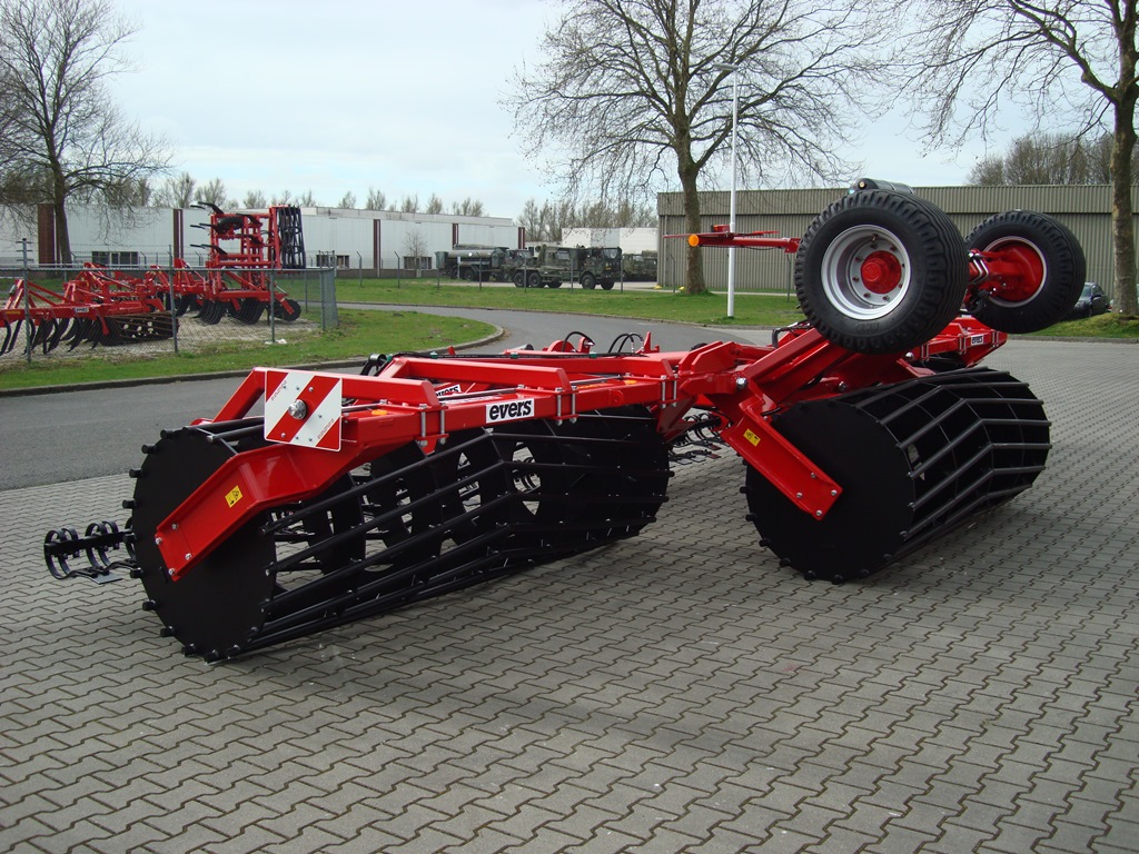 Deze machine van Evers Agro is fors te noemen met een werkbreedte 830 cm. Rollen van Ø100 cm met assenstaal Ø40 mm.