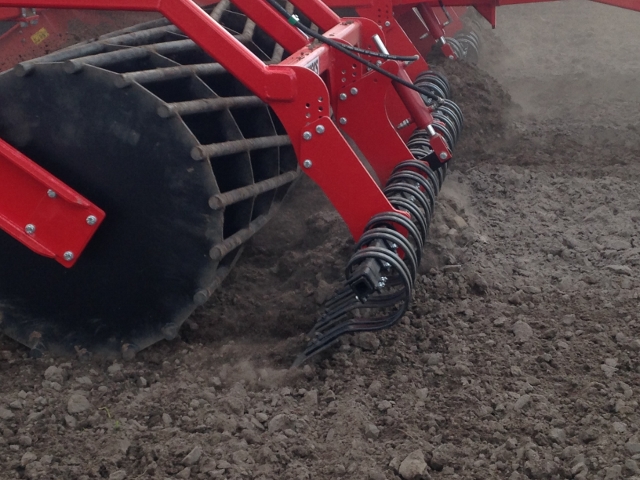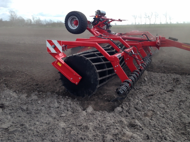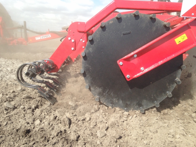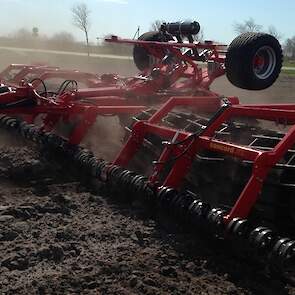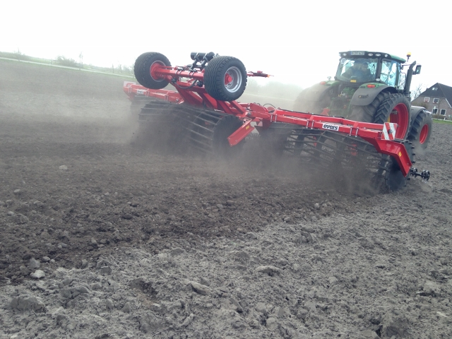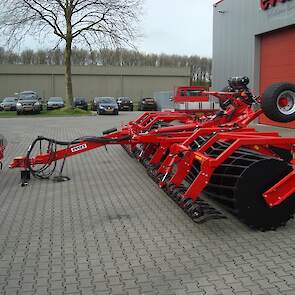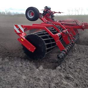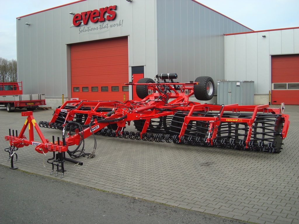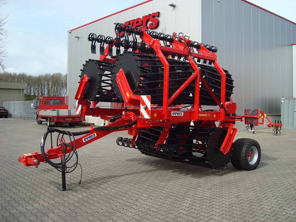 Deze machine van Evers Agro is fors te noemen met een werkbreedte 830 cm. Rollen van Ø100 cm met assenstaal Ø40 mm.