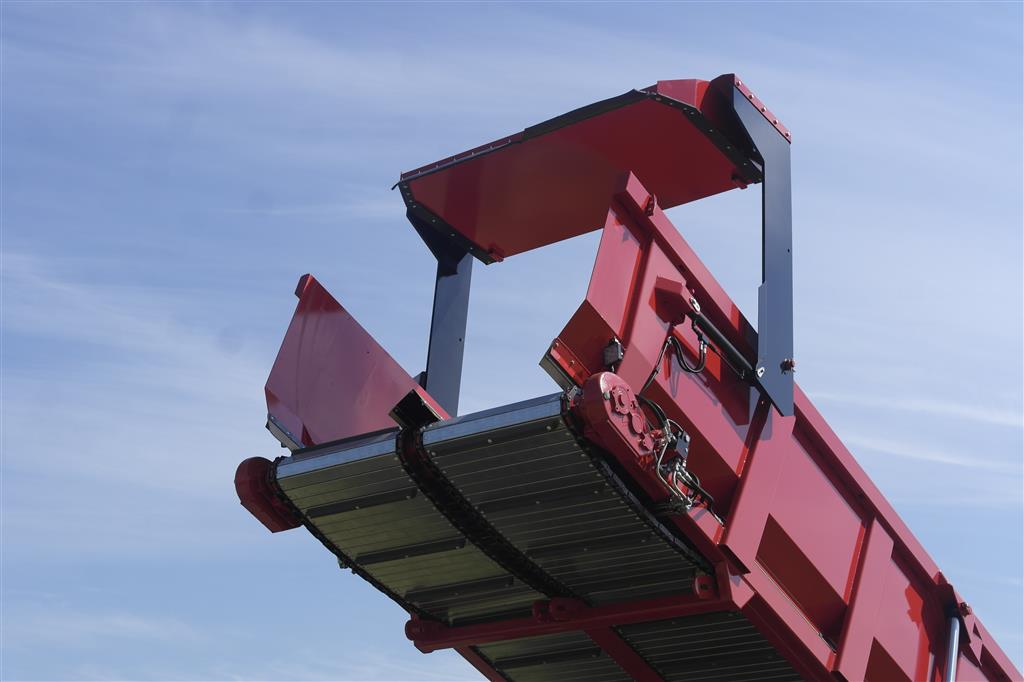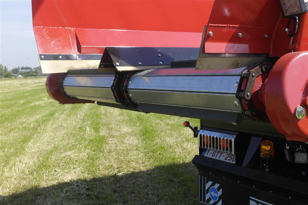 De hooglosser is uitgerust met een gesloten bodemketting uit gegalvaniseerd staal met daarop Ertalon schrapers gemonteerd. Dit tapijt is speciaal ontwikkeld voor het veilig vervoeren van landbouwproducten zonder enig verlies. Dit tapijt zorgt er daarnaast ook voor dat de wagen volledig leeg is na het lossen zonder enige achtergebleven resten. Zo kunnen wij u garanderen dat er geen contaminatie zal bestaan met andere producten. De aandrijving van dit tapijt gebeurt door 2 hydromotoren gemonteerd langs de 2 zijkanten van het tapijt.