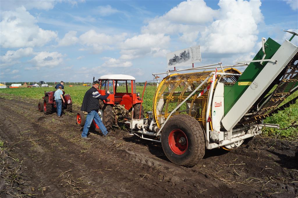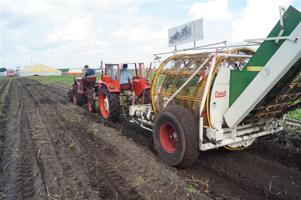 Aardappels rooien gaat niet vanzelf !hier met de Climax en Zetor ervoor van Evert Topper en de Fahr er voor als sleeptrekker.Dit alles is te zien tijdens