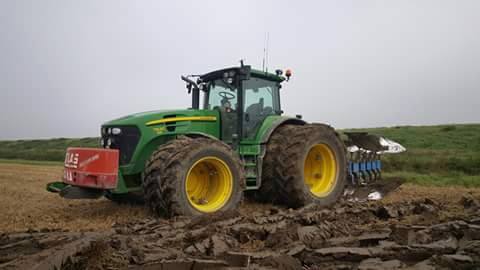John Deere 7930 24 uur per dag ploegen rondom op dubbel lucht , voor betere bodem druk en kracht overbrenging 6 schaar lemken op 58% afslipbare klei in oost Groningen.Ploegen gaat op GPS van Trimble van lmb Oosterhof