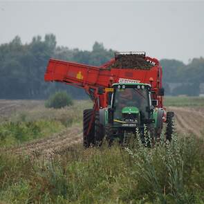 Zetmeel aardappelen rooien met Grimme DR 1500 en John Deere 6330