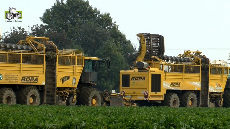 Ropa Euro Tiger V8 en Ropa Euro Tiger V8 - 4A suikerbieten rooien van LAN - Landbouw Werkgroep Niederrhein GmbH dit is een samenwerking van verschillende loonwerkser die samen de suikerbietenoogst uitvoeren