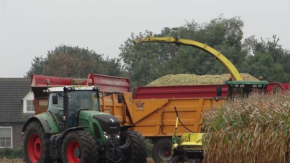 Loonbedrijf Nooyen uit Deurne aan het maishakselen met een John Deere 7800, Fendt 927 en Fendt 936 met Veenhuis kiepers en een Ginaf maistruck.