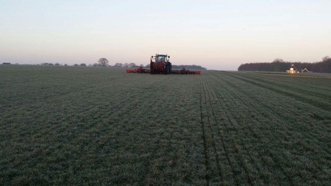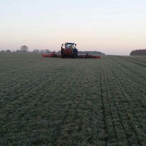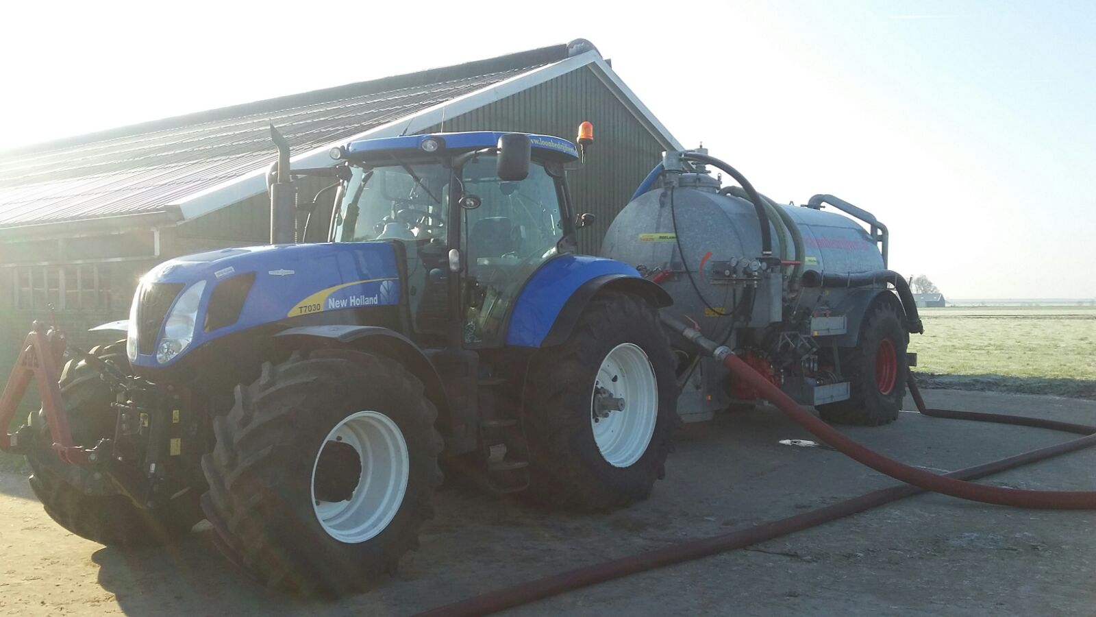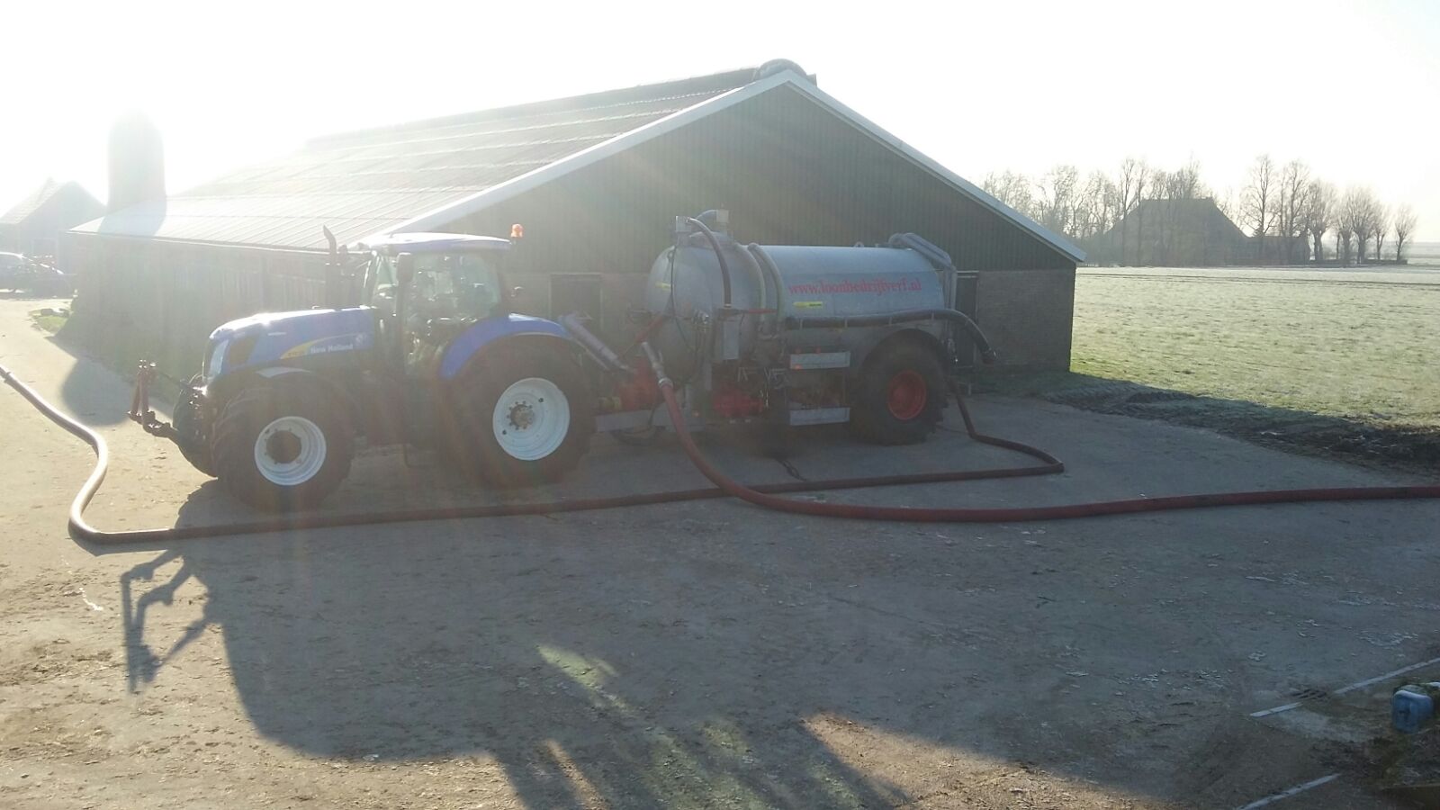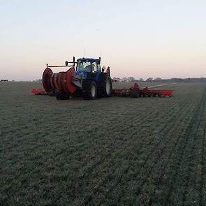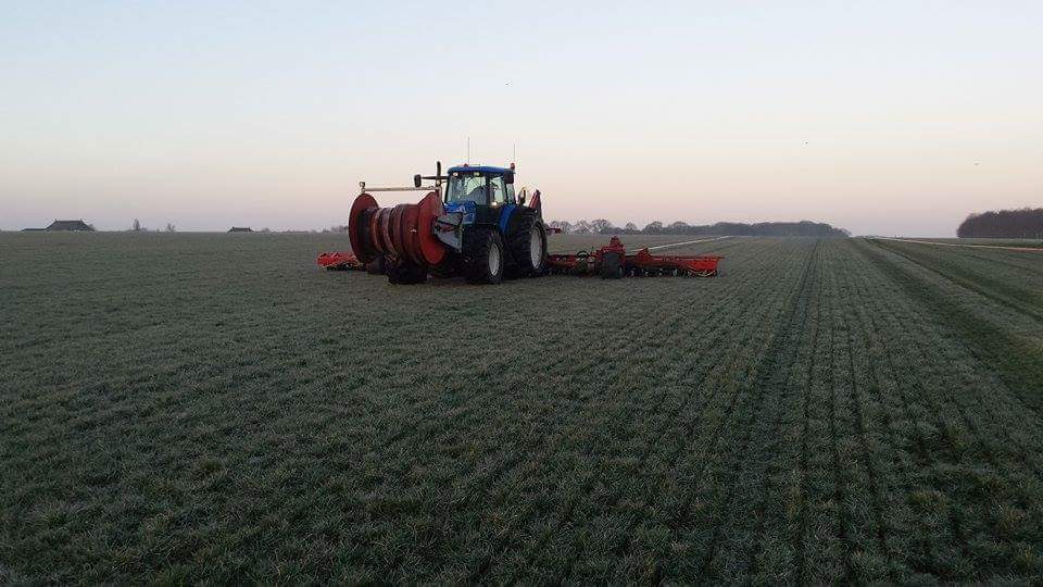 Loonbedrijf Verf te Oudemirdum aan het sleepslangen.