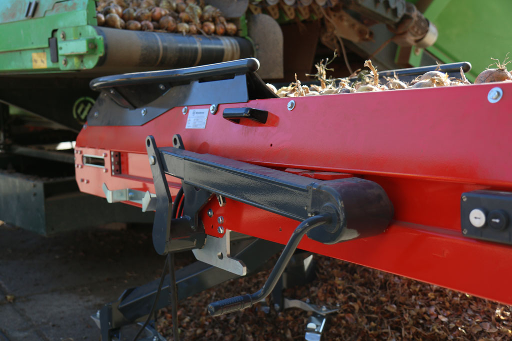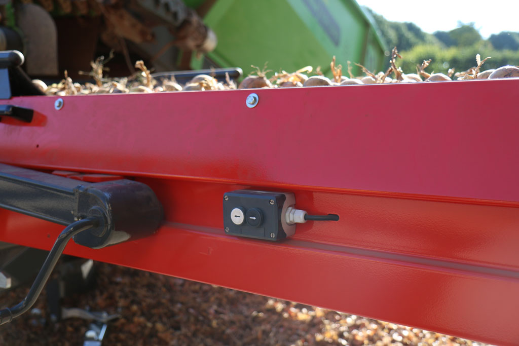 De transportbanden blinken uit in gebruiksgemak waardoor het uitermate PLEZIERIG werken is. Zo is de MC-reeks uitgerust met een sterk en eenvoudig uitschuifmechanisme. De dissel kan op 2 posities bevestigd worden, waardoor de transportband steeds met de heftruck kan verplaatst worden. De centraal geplaatste schakelkast voorziet een gemakkelijke bediening via beide zijden.Doordat de afgiftehoogte meer dan 190 cm is, kunnen de transportbanden multifunctioneel ingezet worden voor het vullen van bv. de MB 33 en MB 55 kistenvullers. Bovendien zijn alle MC-machines standaard uitgerust met Start-Control (centraal starten en stoppen van alle gekoppelde machines).