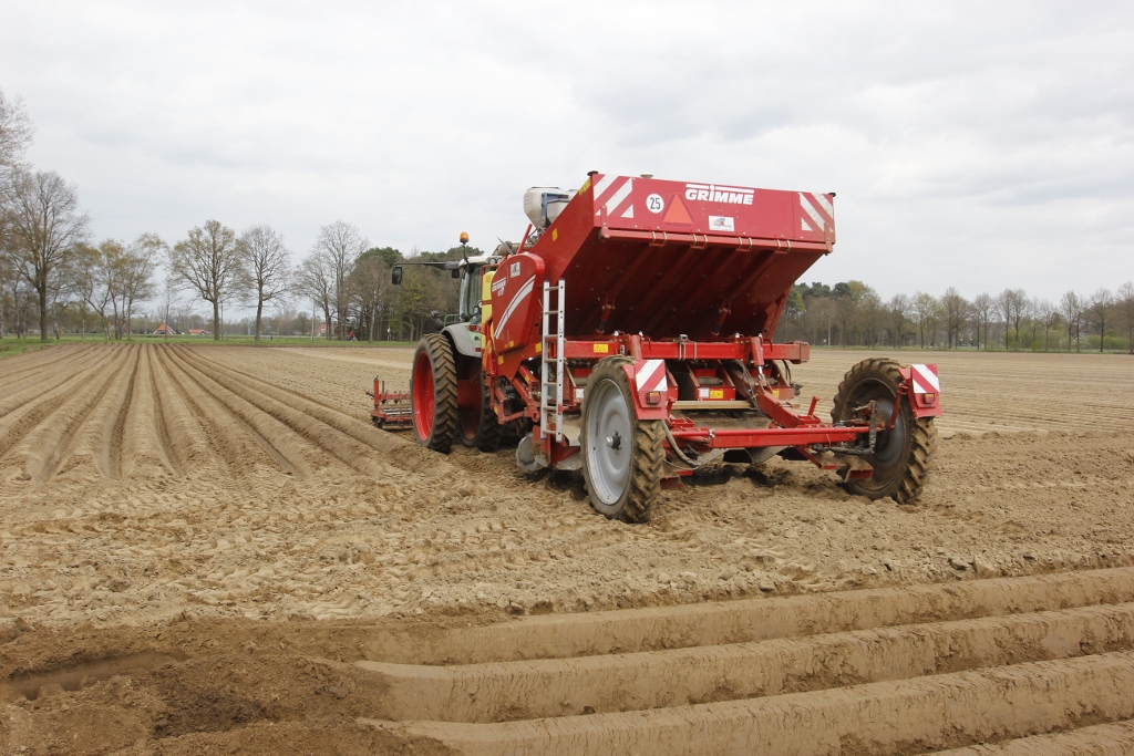 Fendt 516 en Grimme GB 430 pootmachine beide GPS gestuurd aan het aardappelen poten