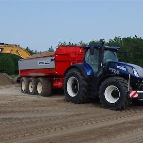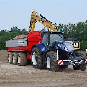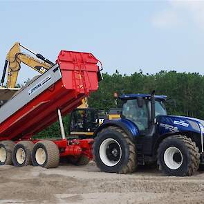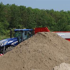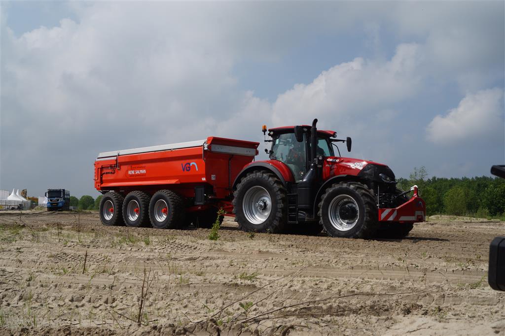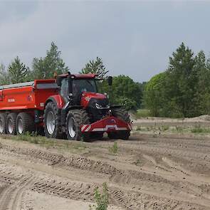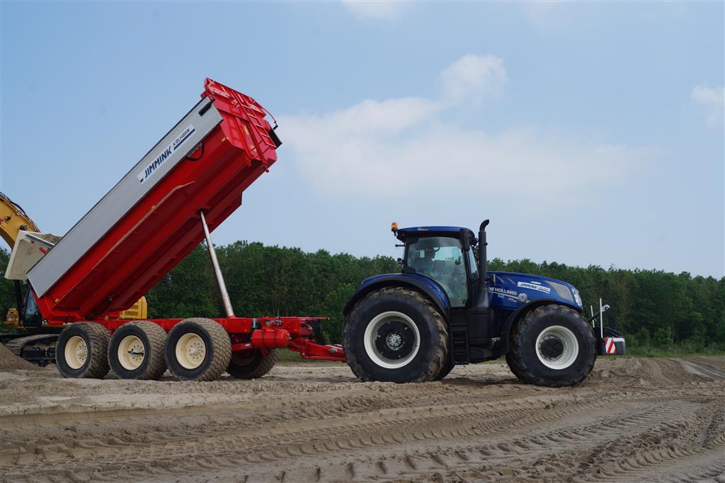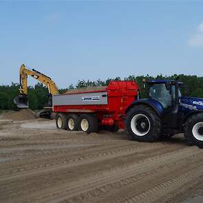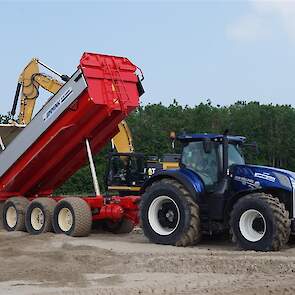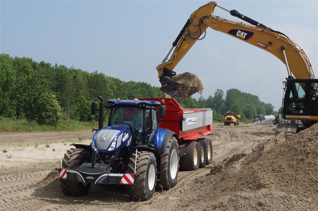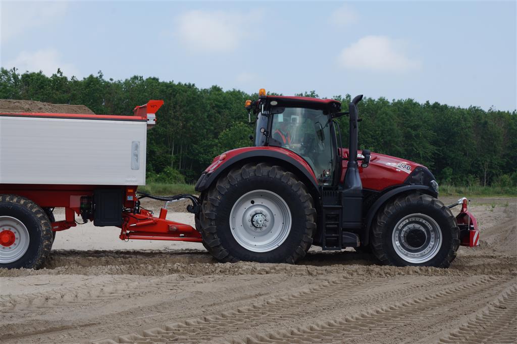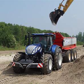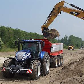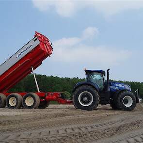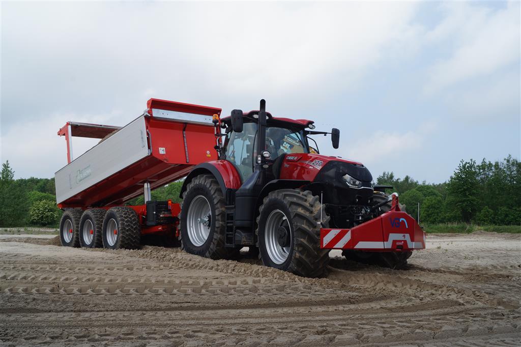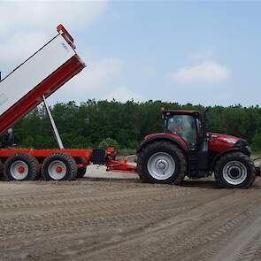 Het blijft mooi zandrijden met een Case-IH Optum en een New Holland HD in het zandtransport.