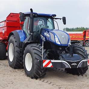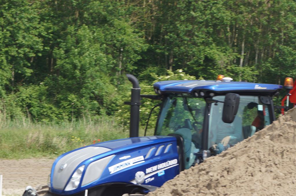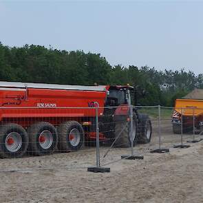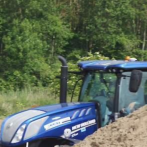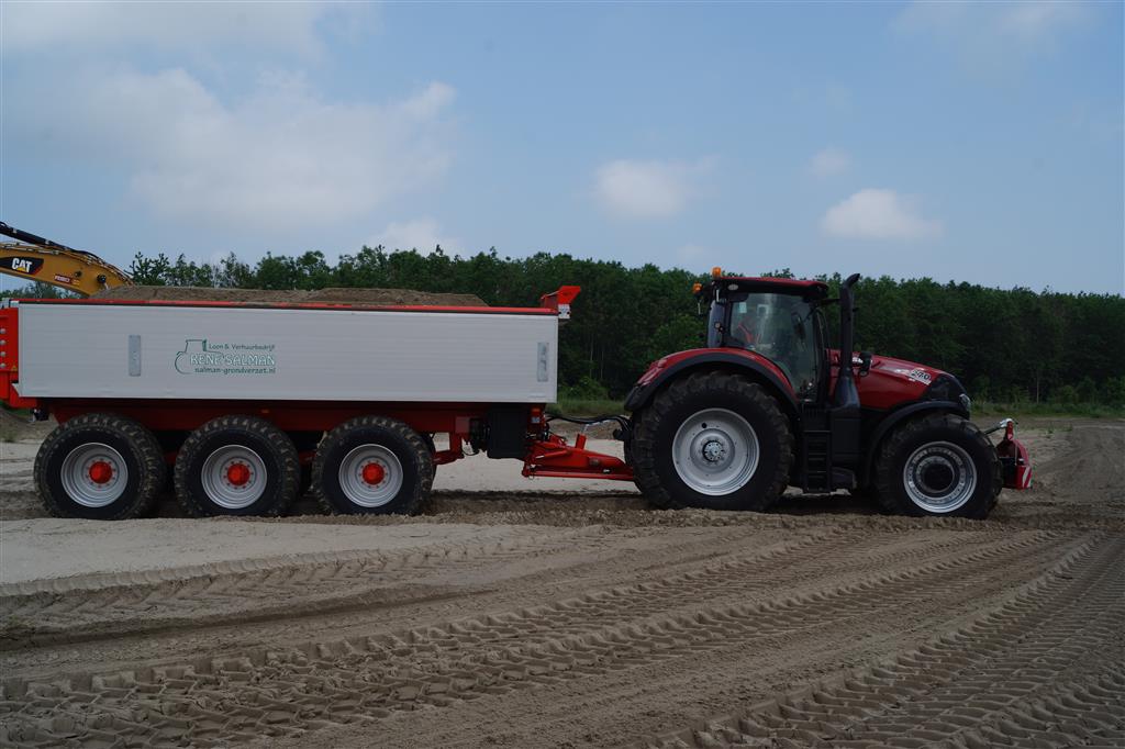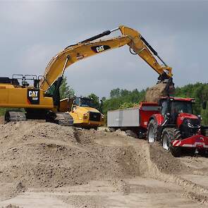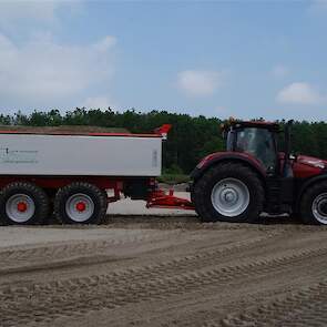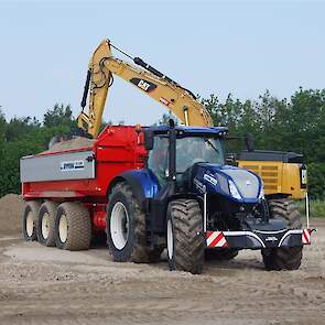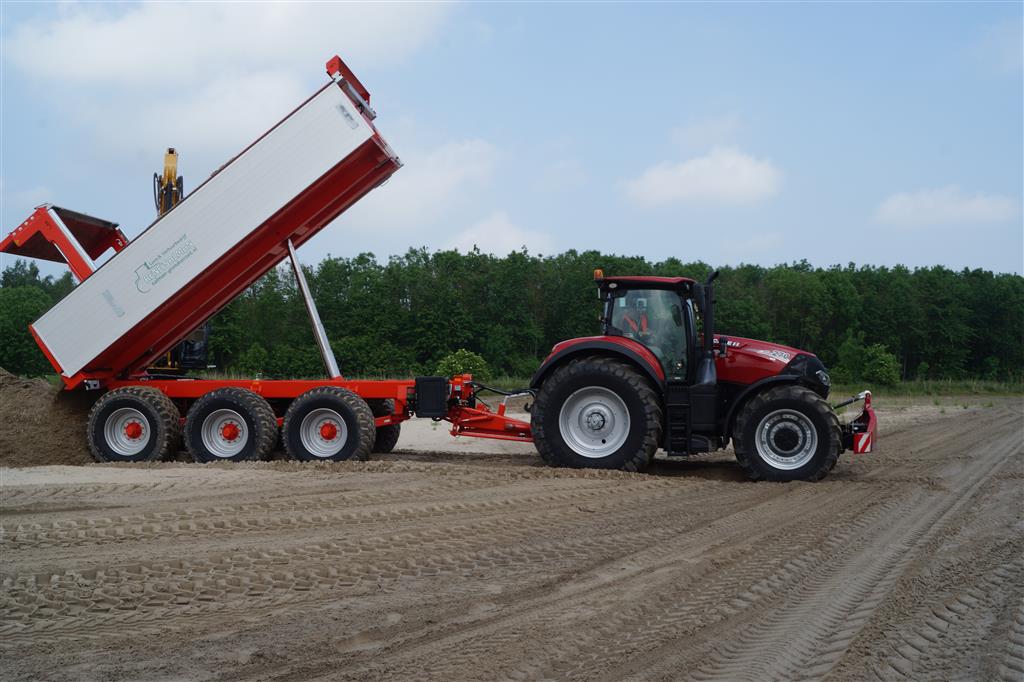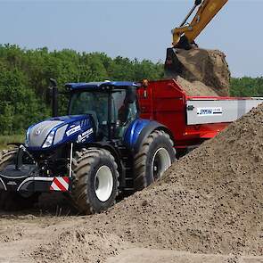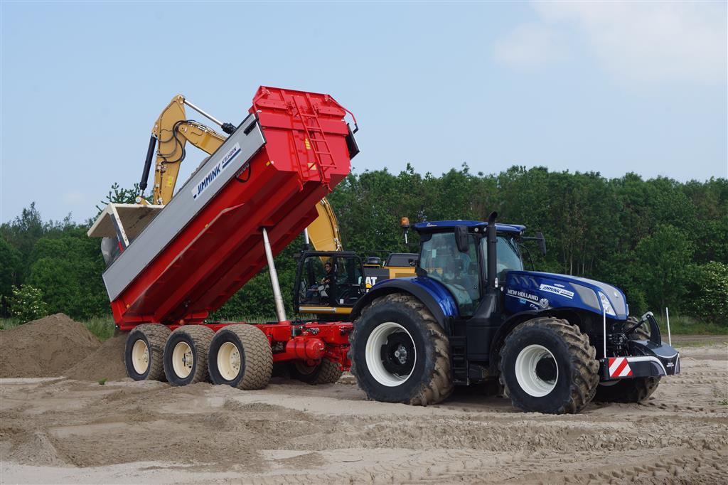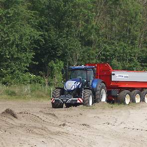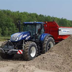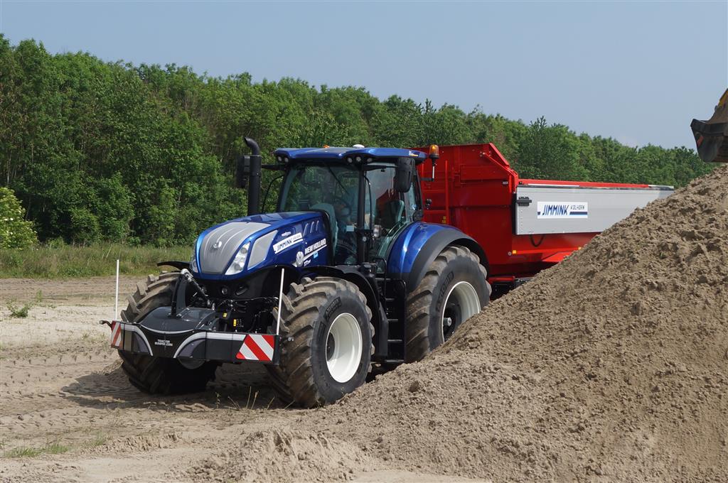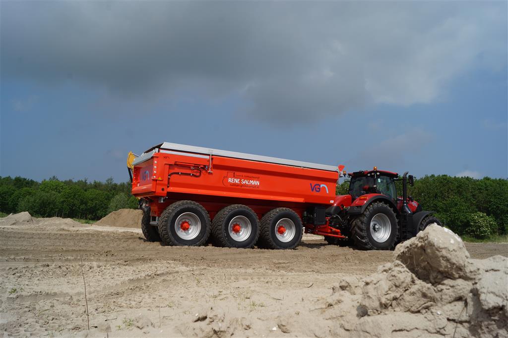 Het blijft mooi zandrijden met een Case-IH Optum en een New Holland HD in het zandtransport.