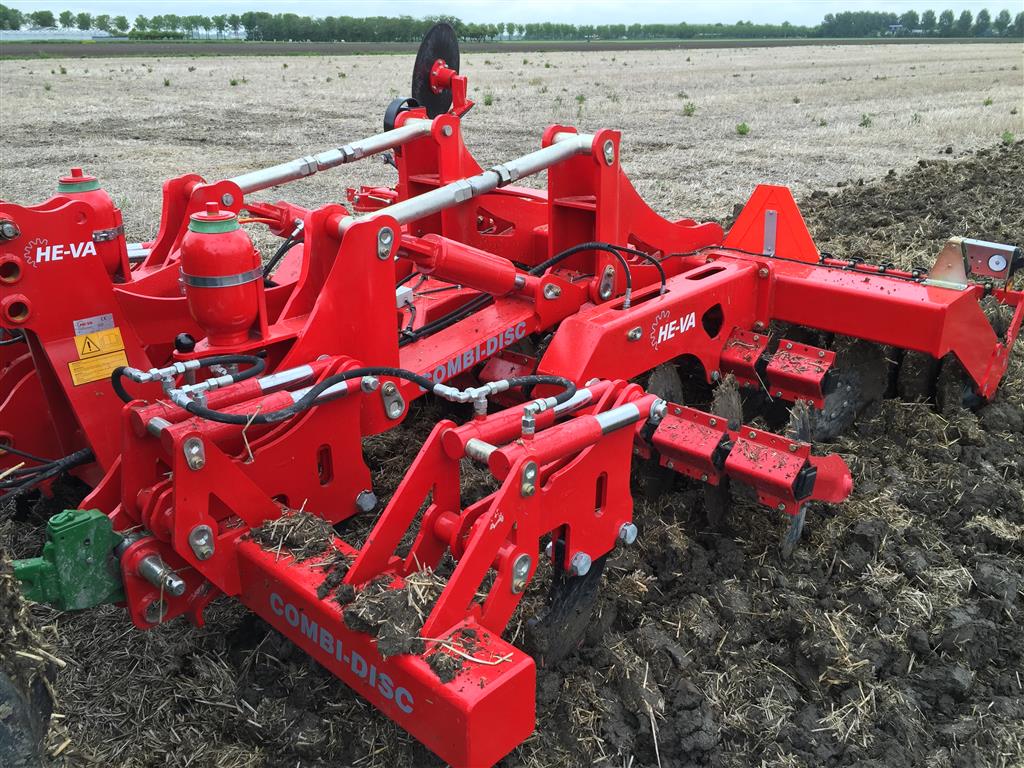 De He-Va Combidisc is een combinatie machine van Woel plus geïntegreerde Schijveneg en Looprol.Het unieke aan deze machine is dat de schijveneg hydraulisch in hoogte verstelbaar is.Ook de looprol aan de achterzijde is hydraulisch in hoogte verstelbaar.