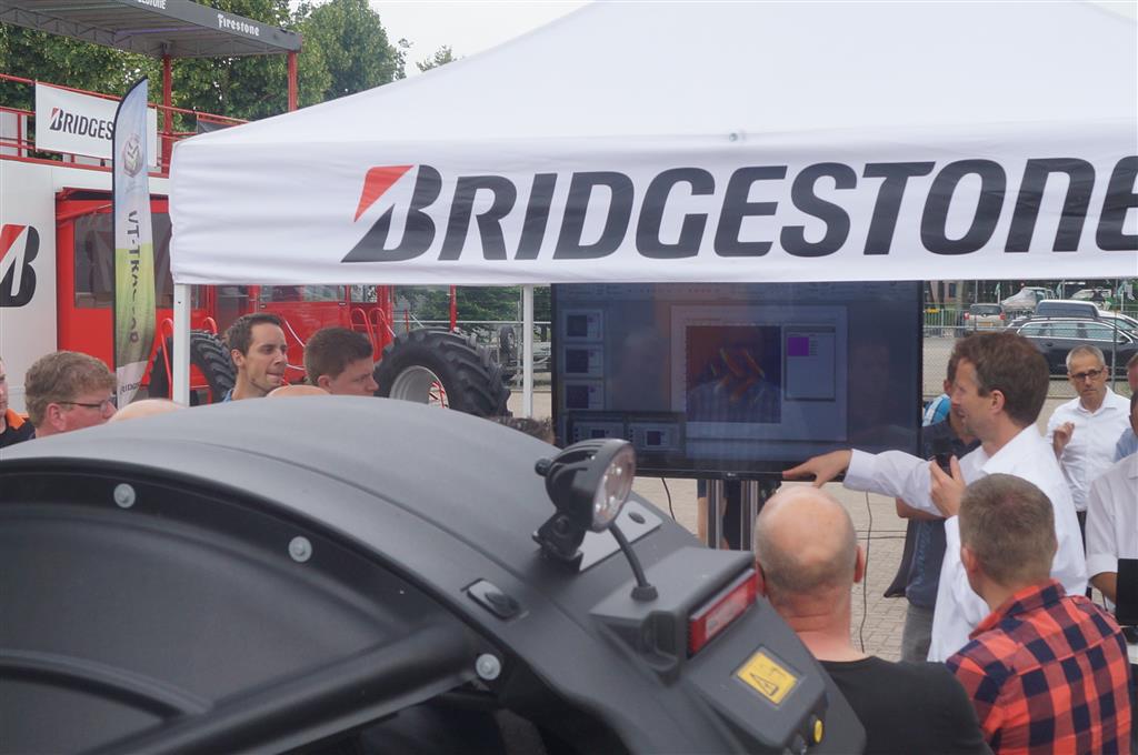 Op bezoek bij Bridgestone/Firestone landbouwbanden evenement.Workshops, demonstraties, de nieuwste trends en de presentatie van de nieuwe Maxi Traction 65.En demonstraties met diversebanden en trekkers met de Pressure Matt, een kostbaar digitaal deken wat live de voetprints, drukpunten en spanningen onder de band laat zien Diverse tractoren (waaronder rups) reden op de mat en werden onderling vergeleken.