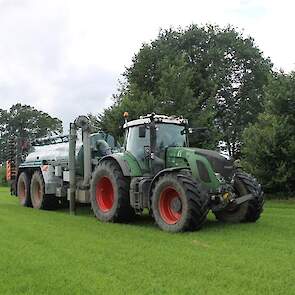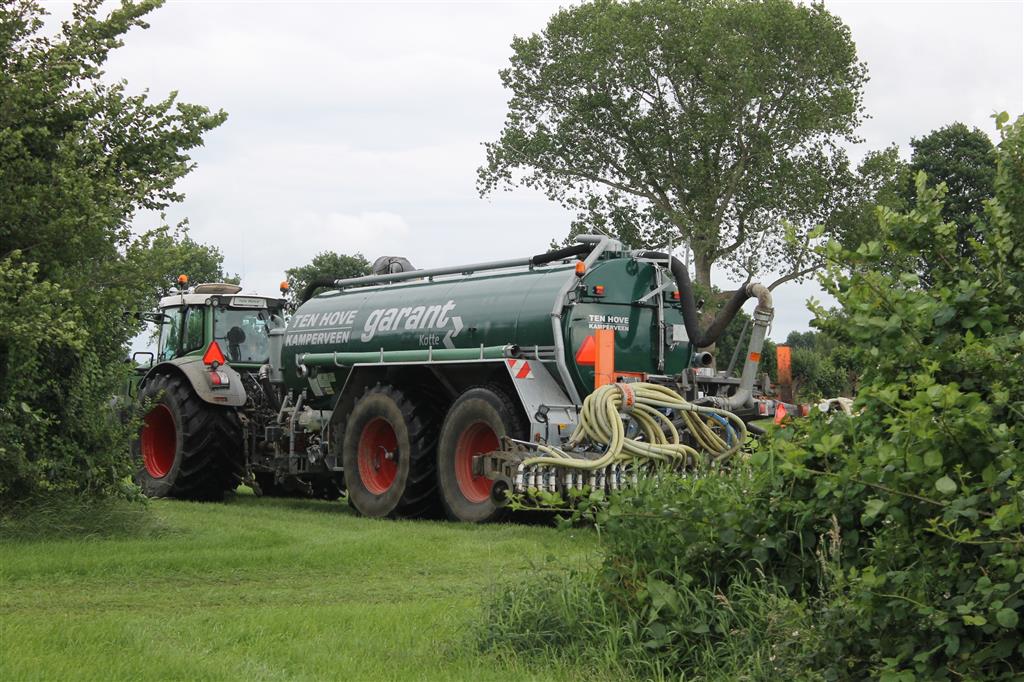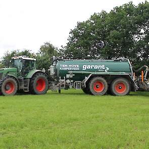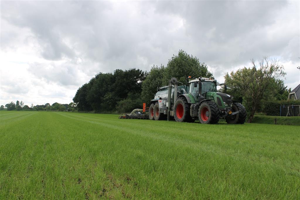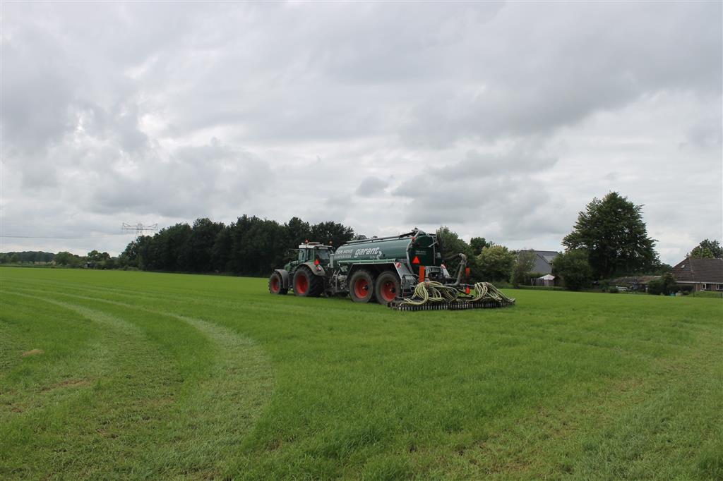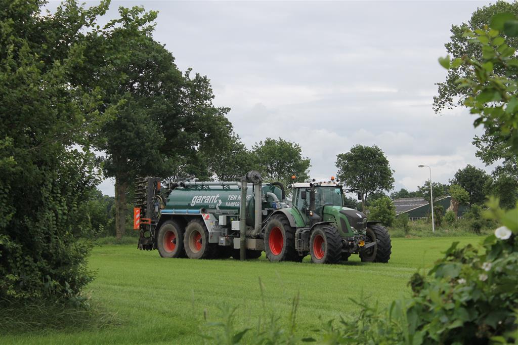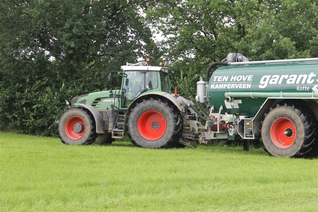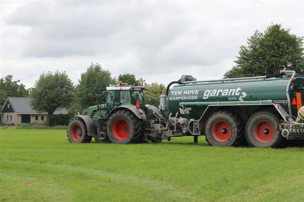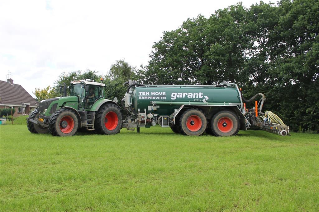 Loonbedrijf Ten Hove uit Kamperveen met de Fendt 927 met Kotte Garant mesttank aan het grasland bemesten