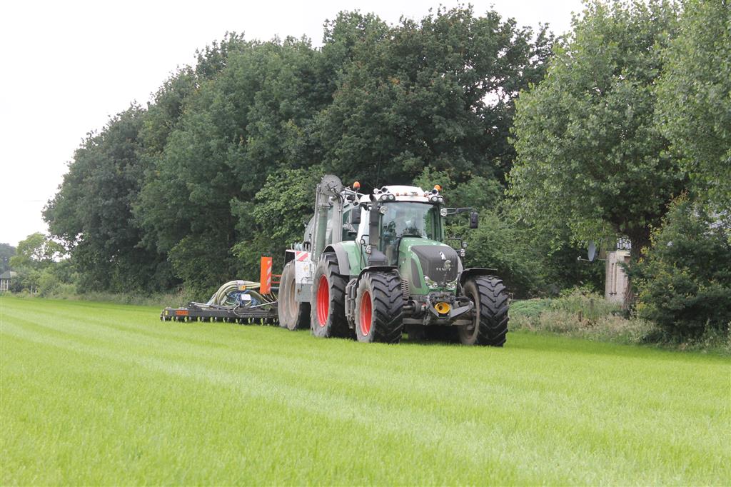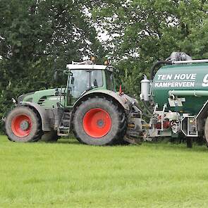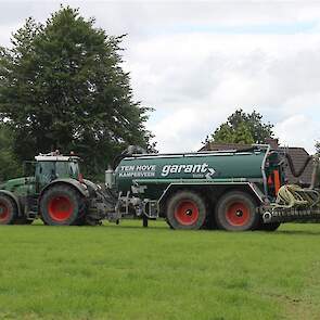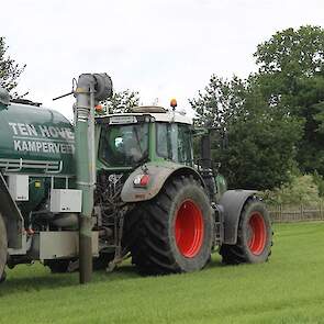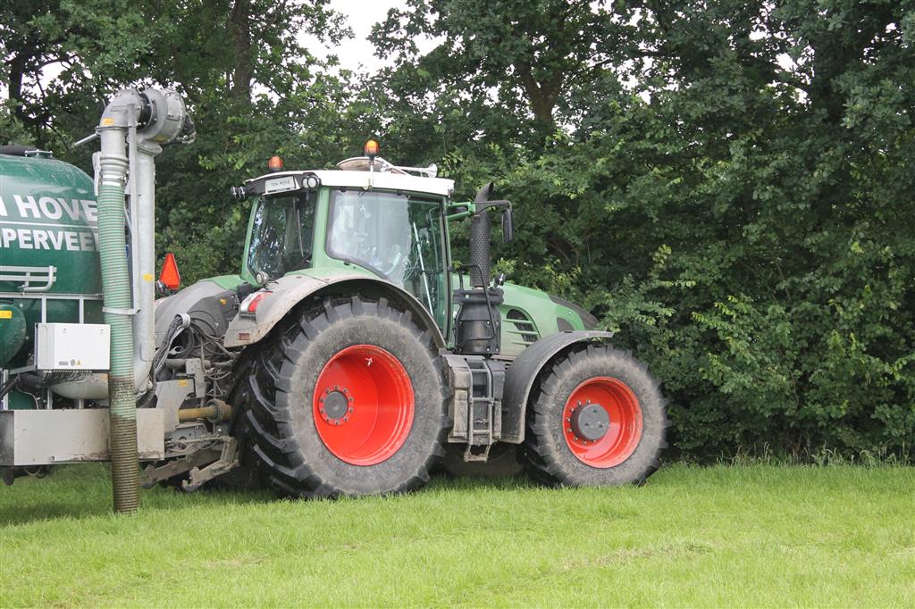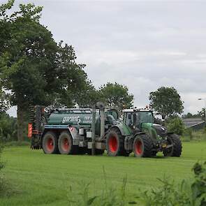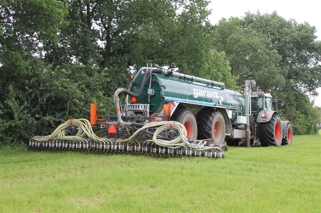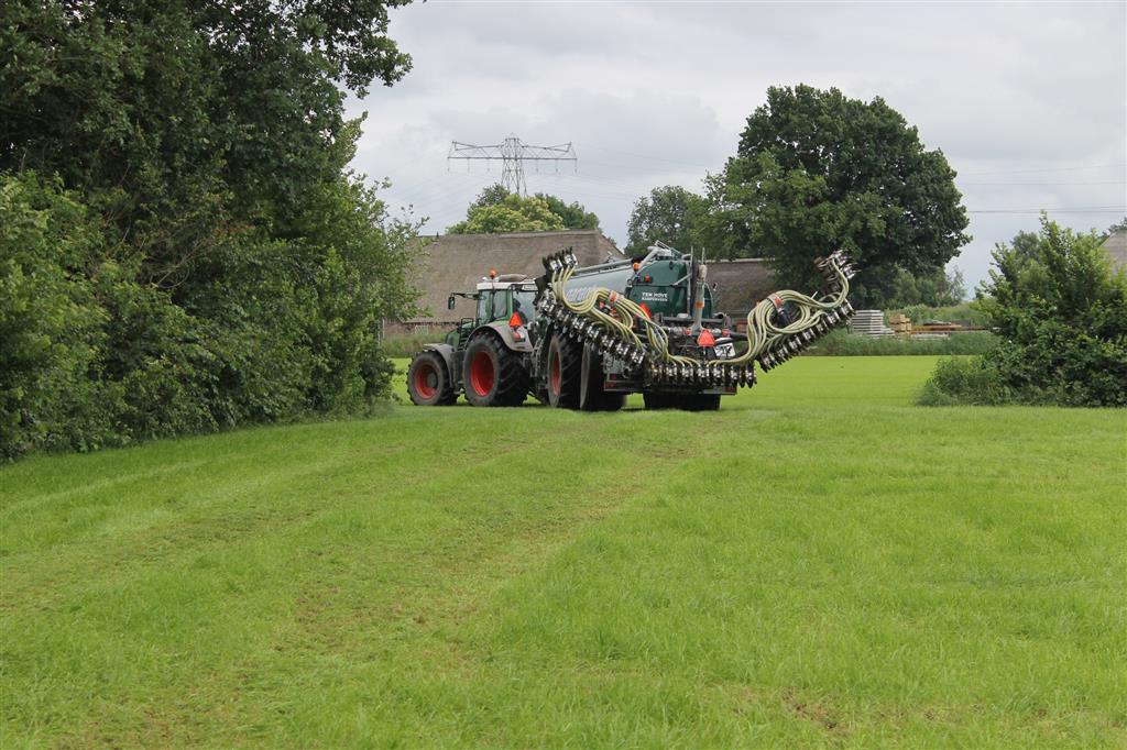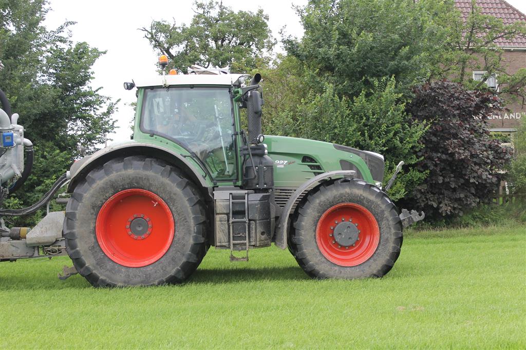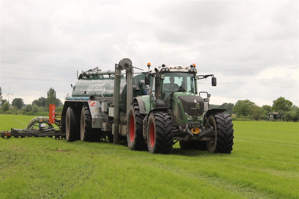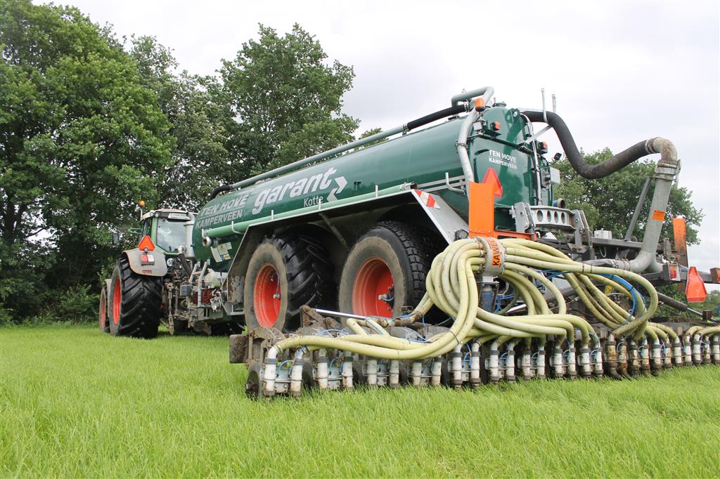 Loonbedrijf Ten Hove uit Kamperveen met de Fendt 927 met Kotte Garant mesttank aan het grasland bemesten