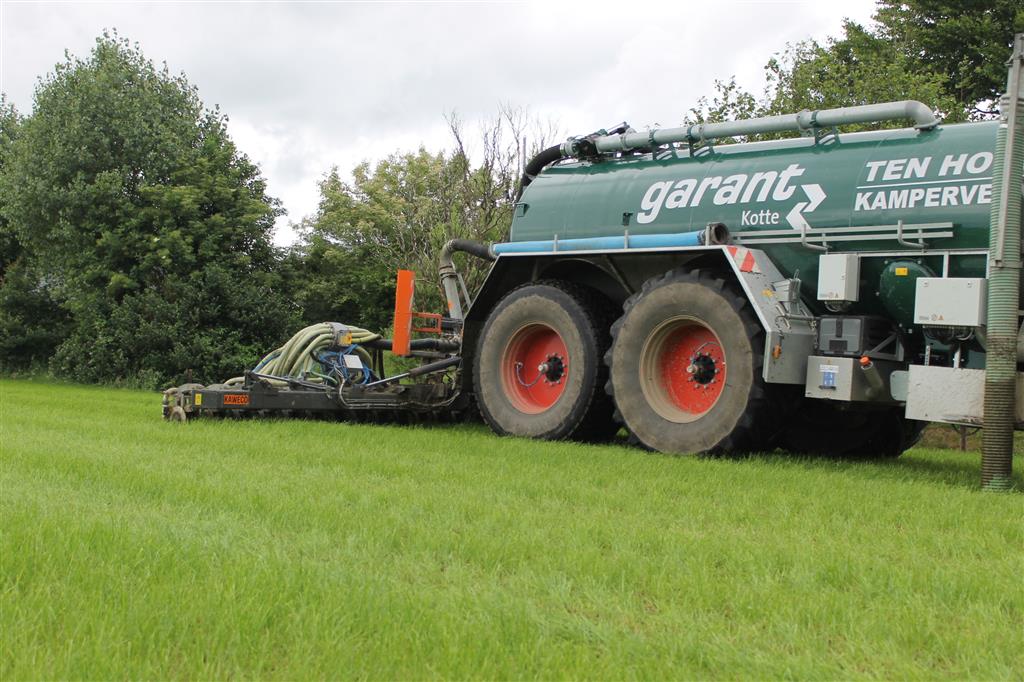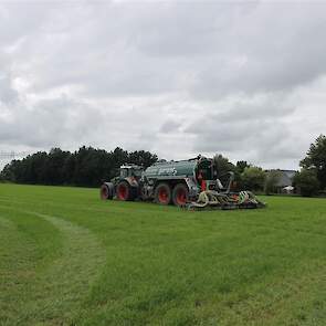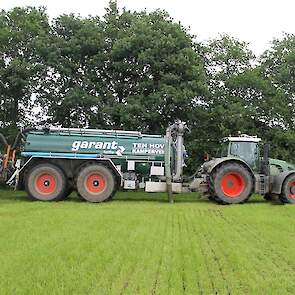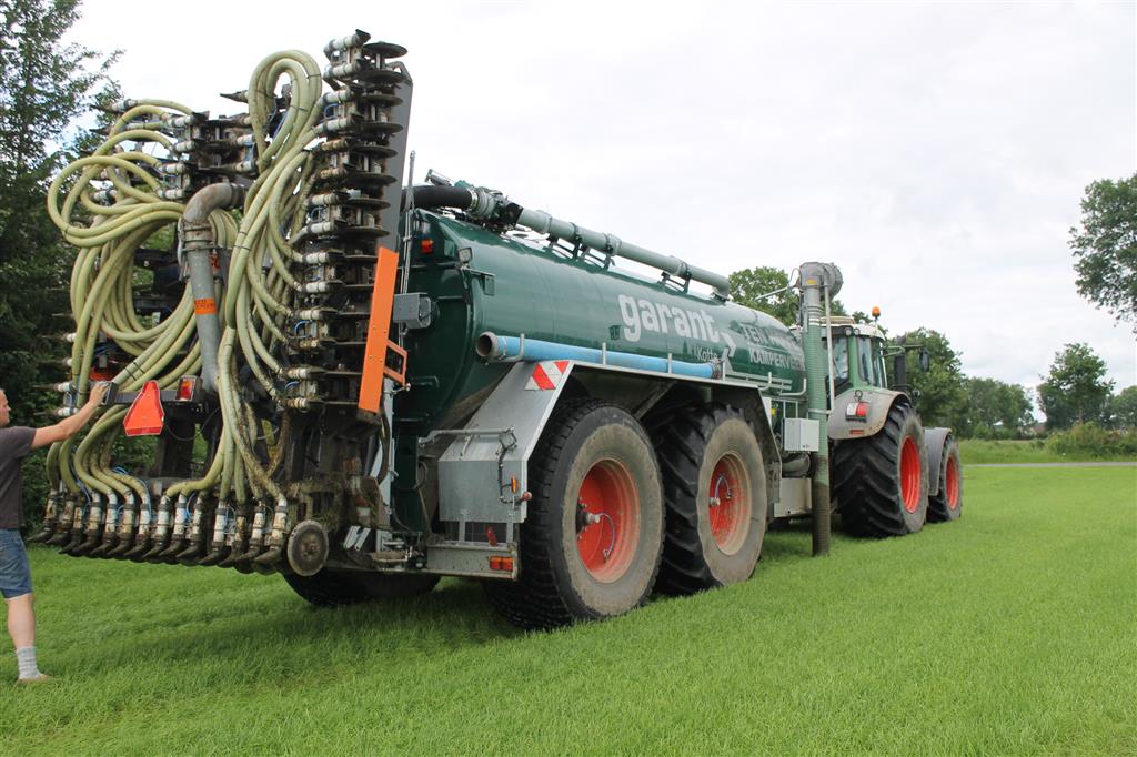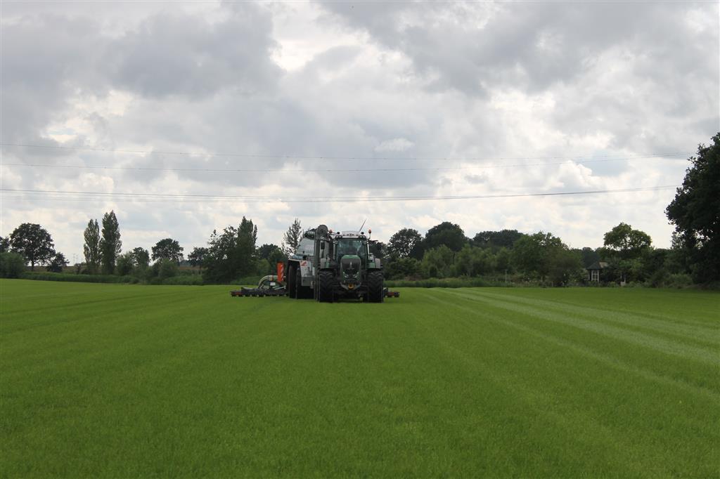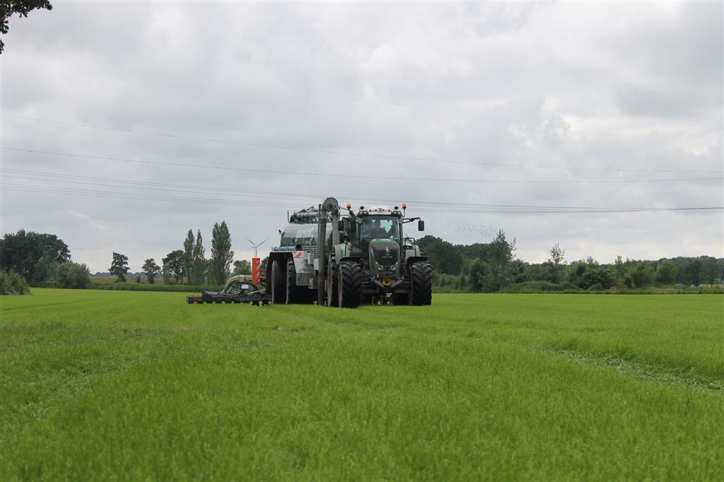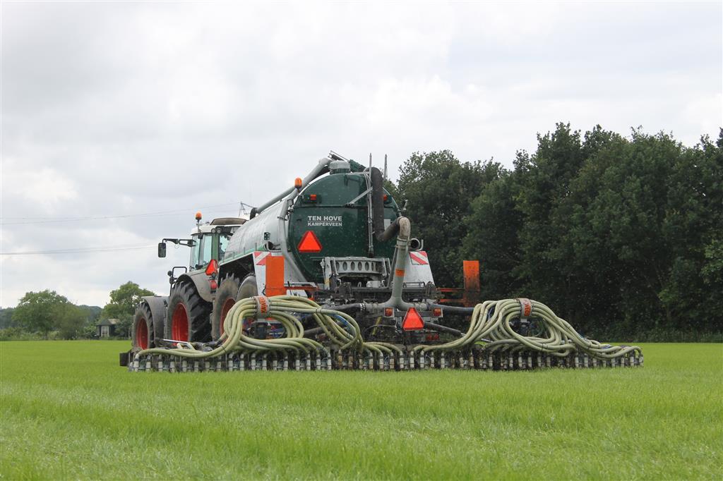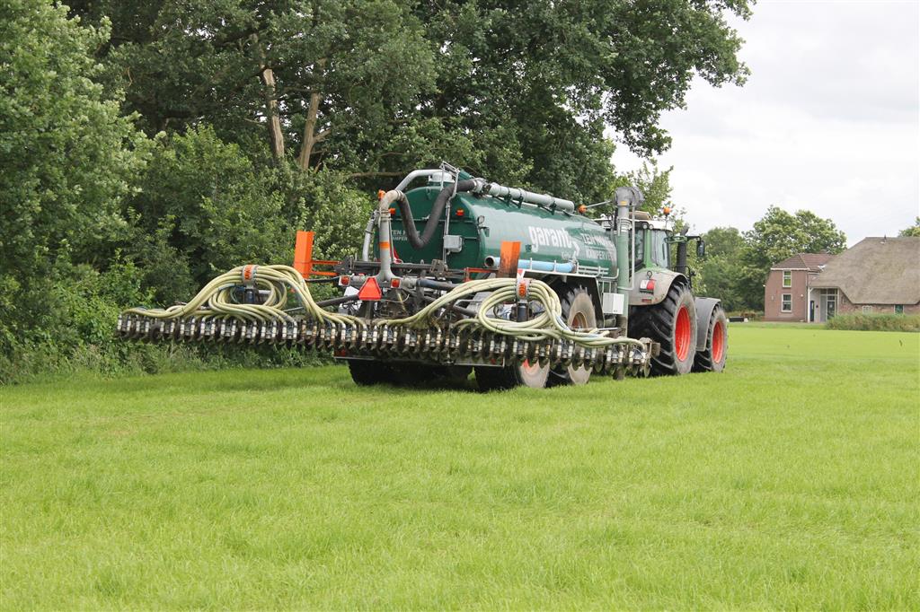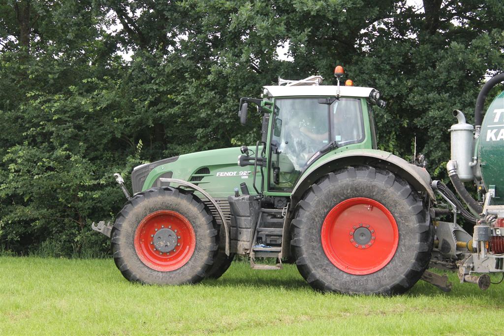 Loonbedrijf Ten Hove uit Kamperveen met de Fendt 927 met Kotte Garant mesttank aan het grasland bemesten