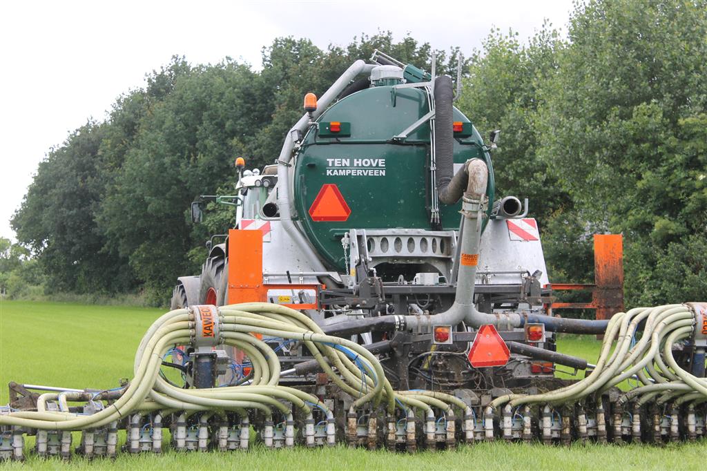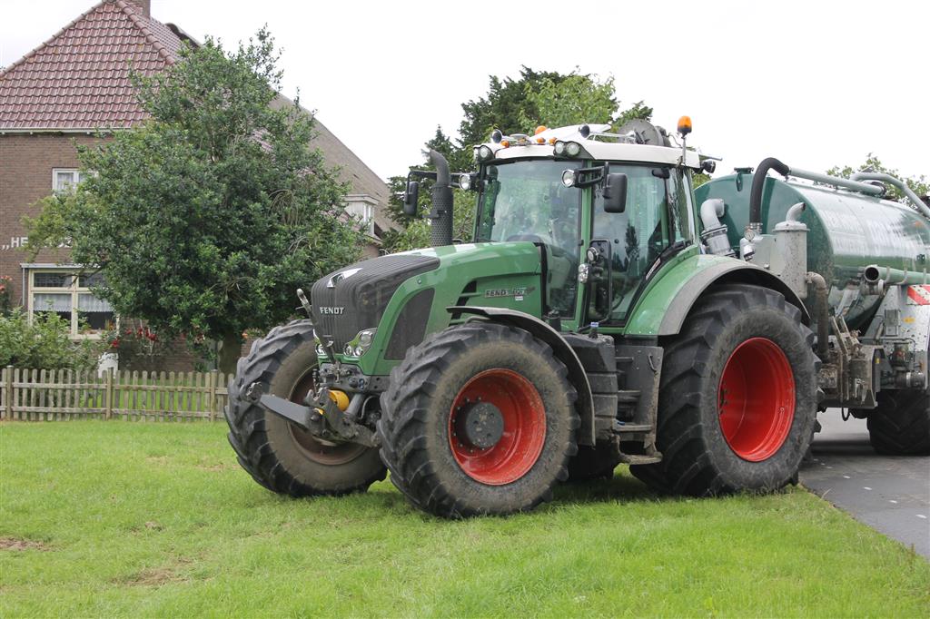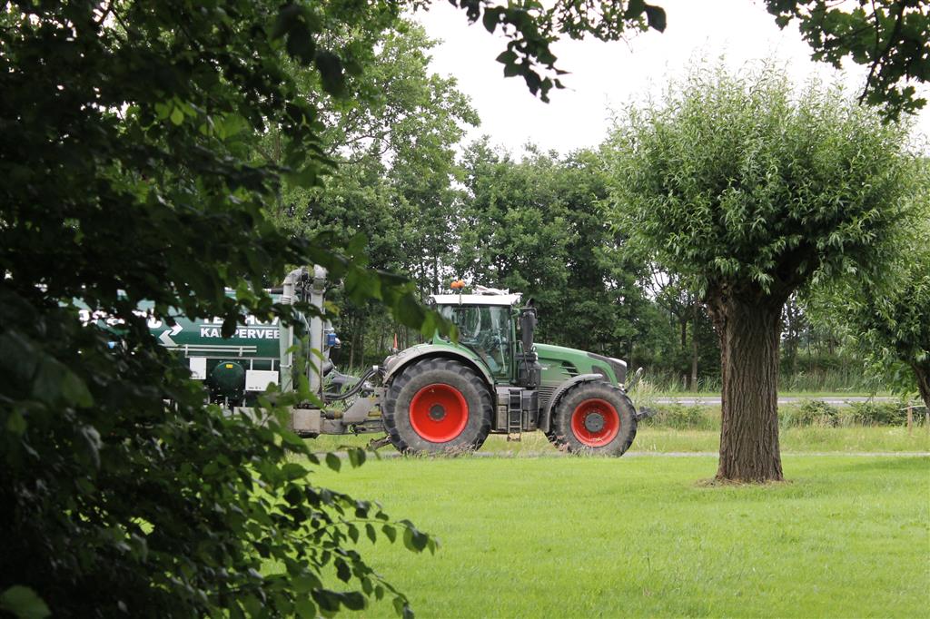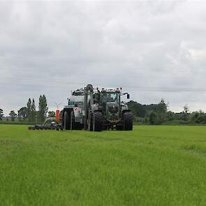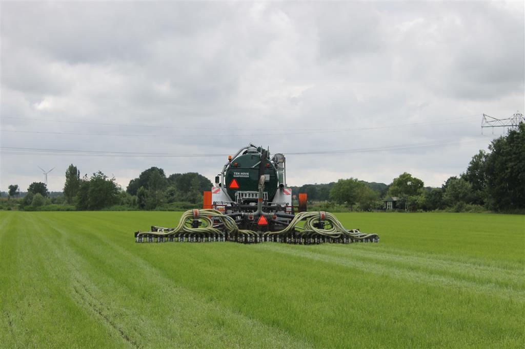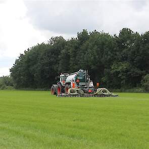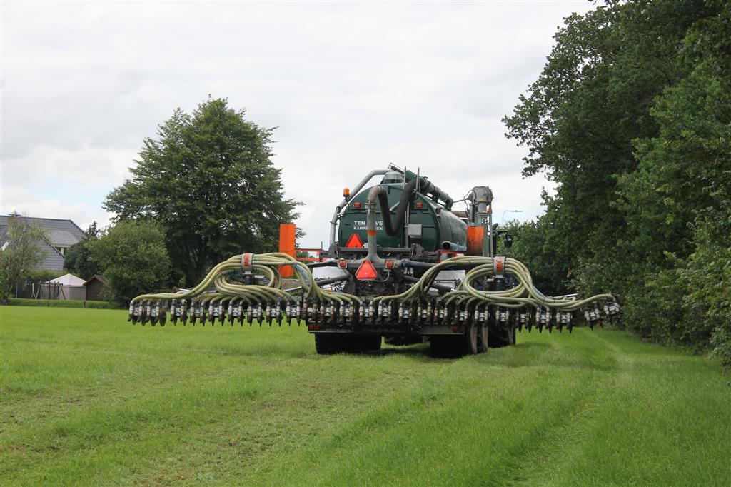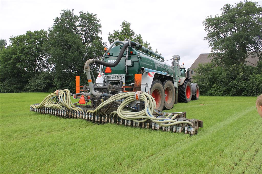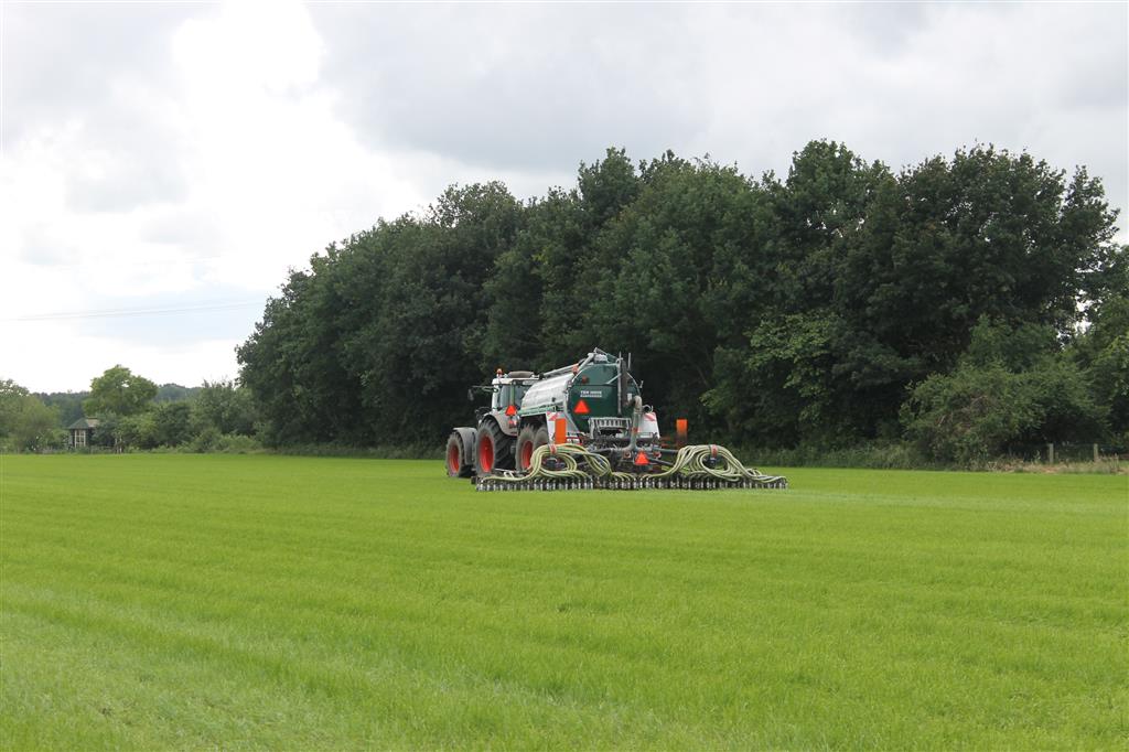 Loonbedrijf Ten Hove uit Kamperveen met de Fendt 927 met Kotte Garant mesttank aan het grasland bemesten