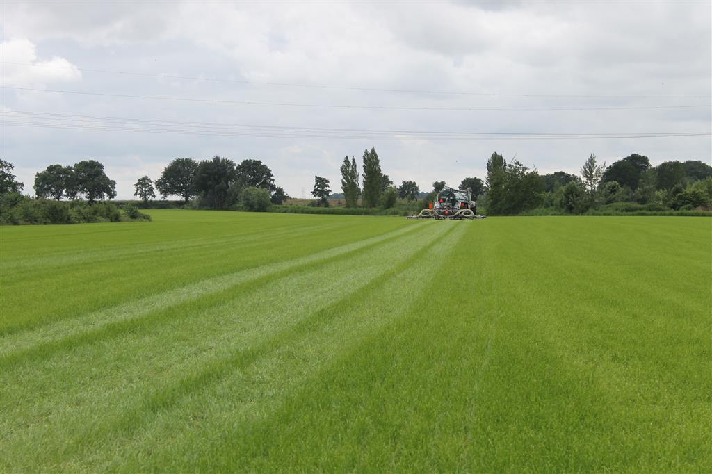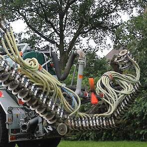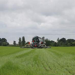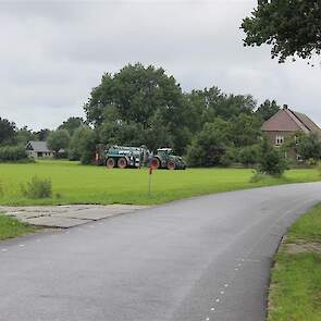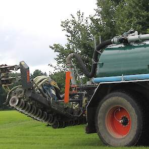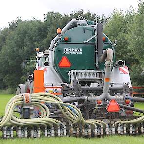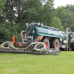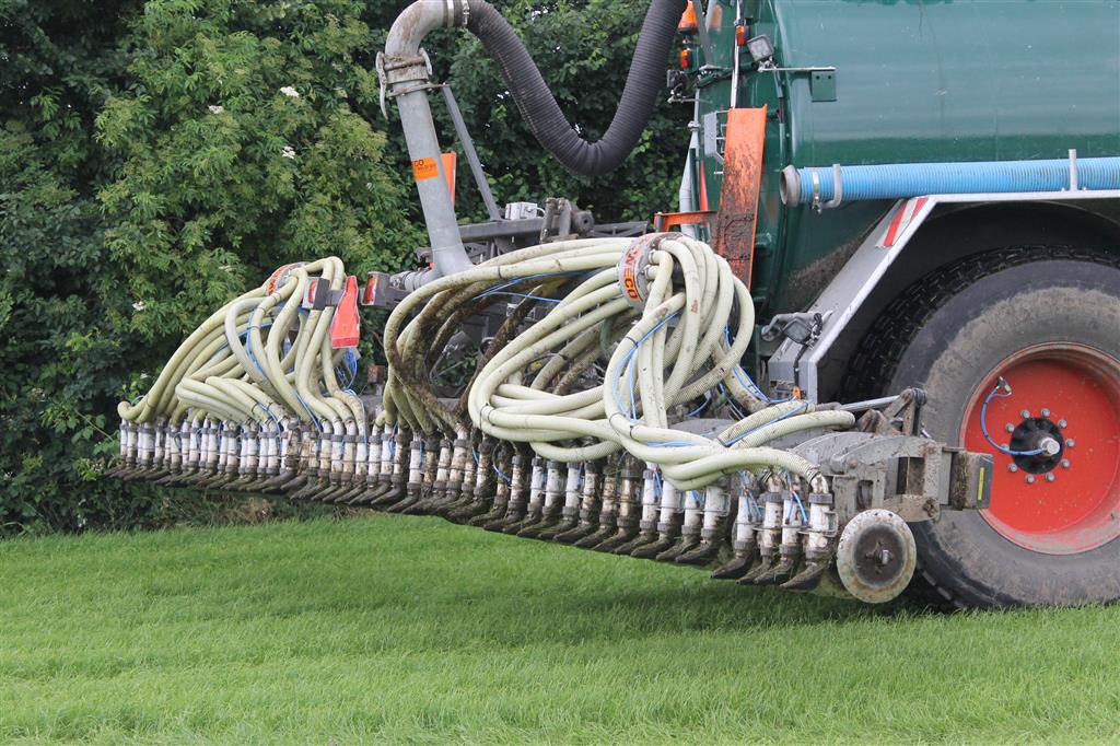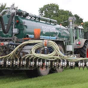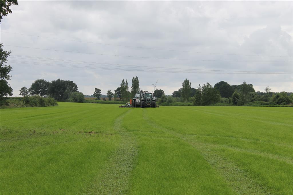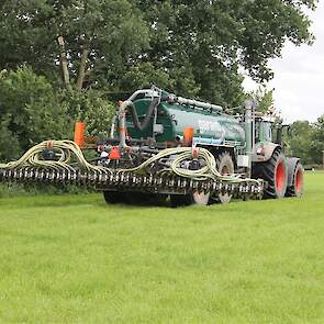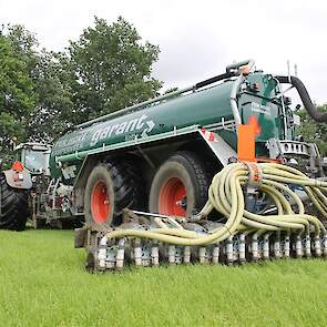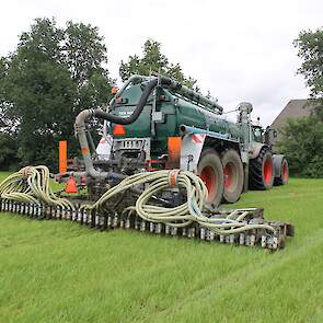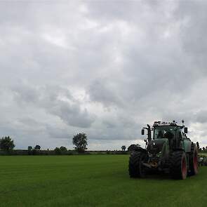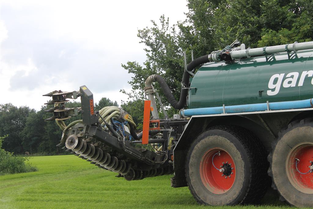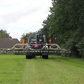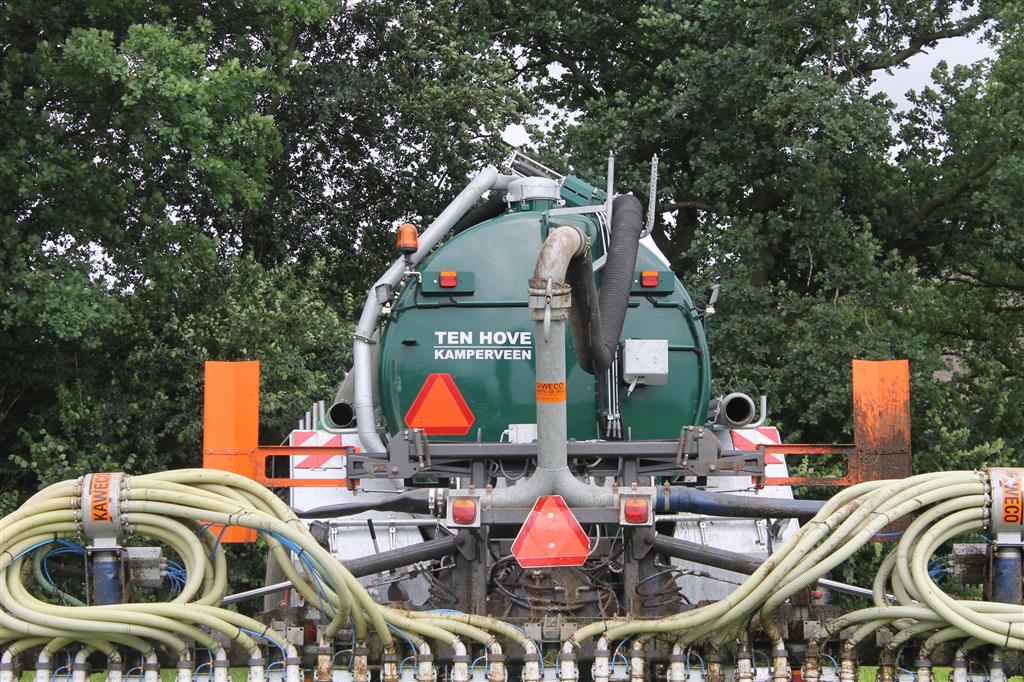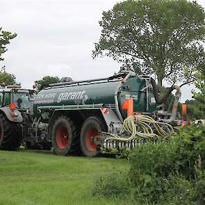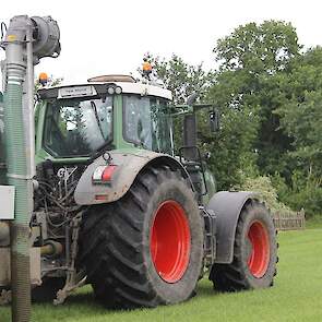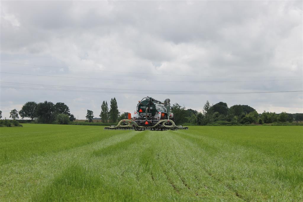 Loonbedrijf Ten Hove uit Kamperveen met de Fendt 927 met Kotte Garant mesttank aan het grasland bemesten