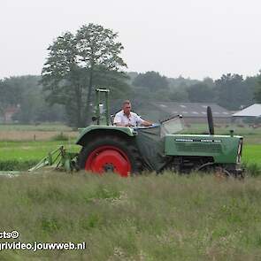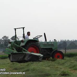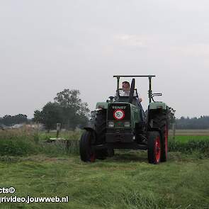 Fendt Farmer 105S aan het gras maaien in Uddel