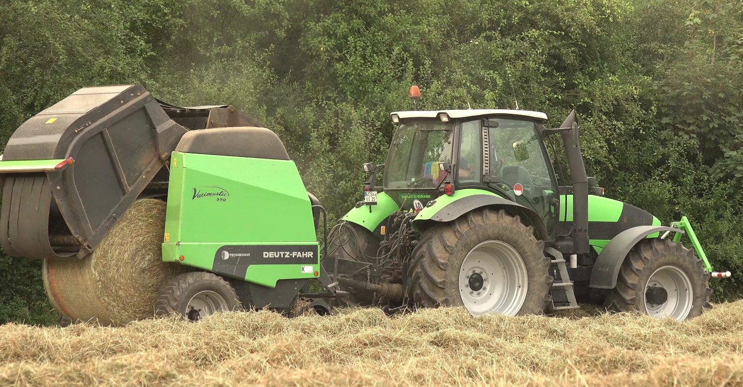 Ronde hooibalen persen met Deutz Fahr Varimaster 590 Trekkerweb