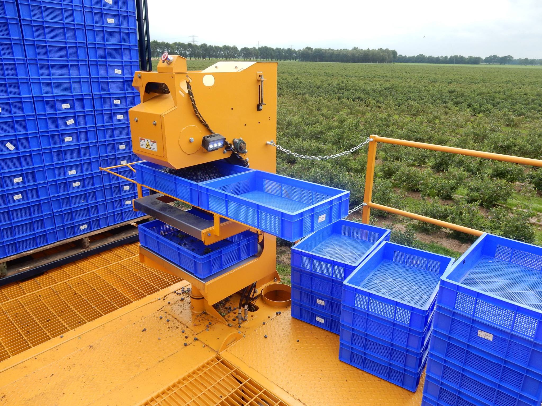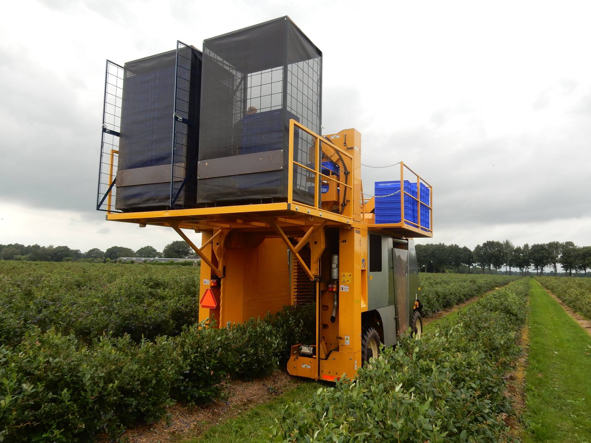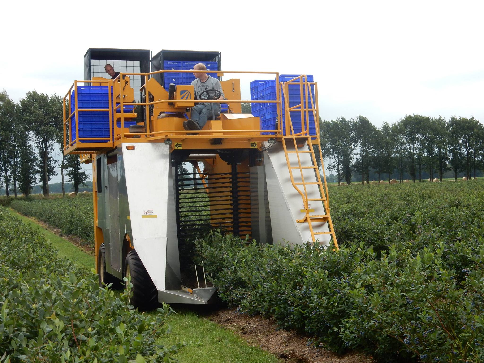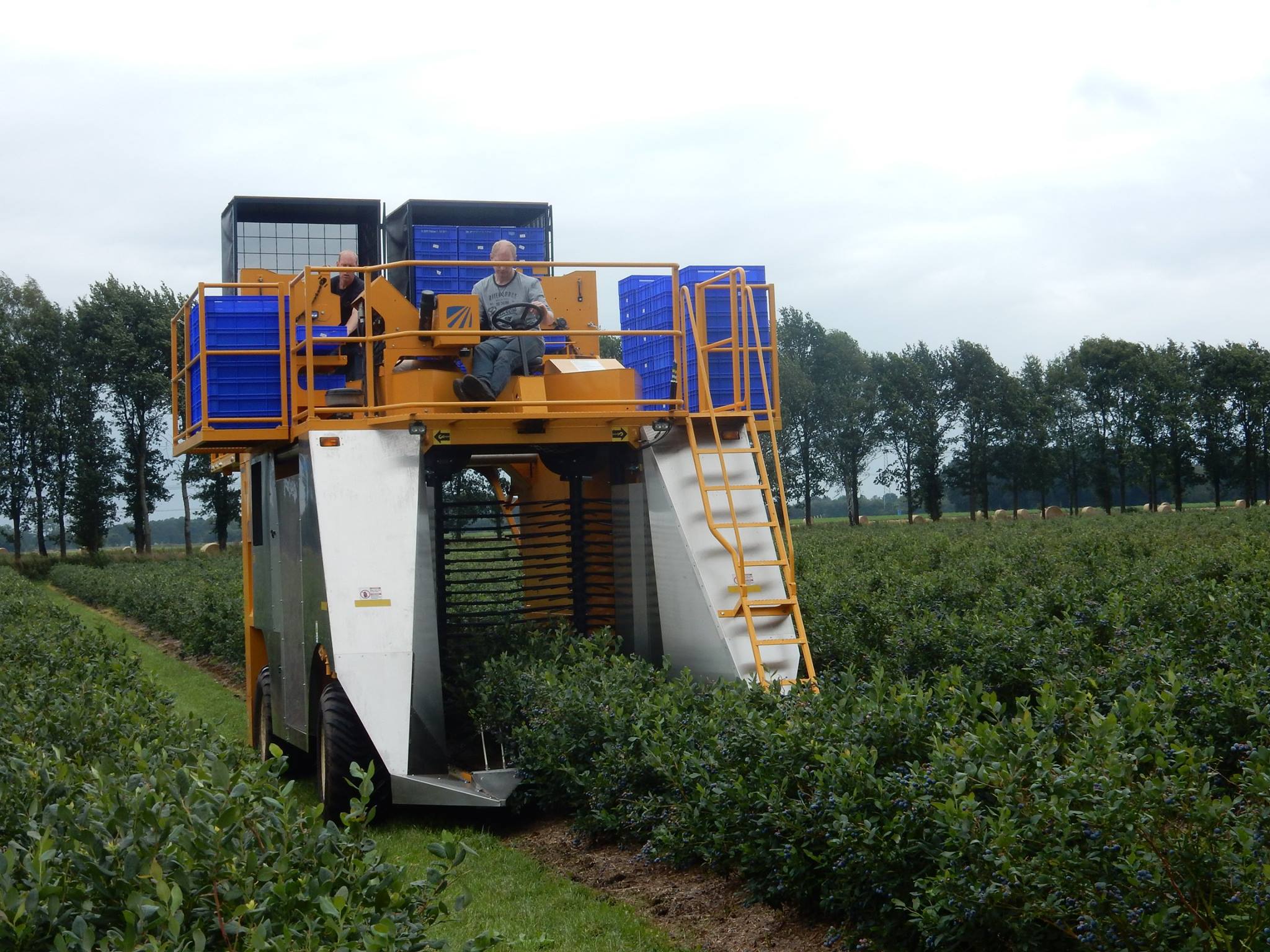 Blauwe bessen plukken met een Oxbo 7420 bij de Familie Hijken in Wachtum