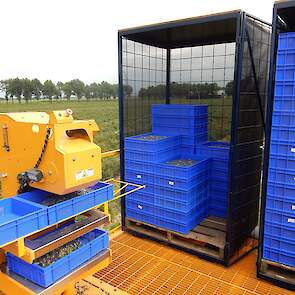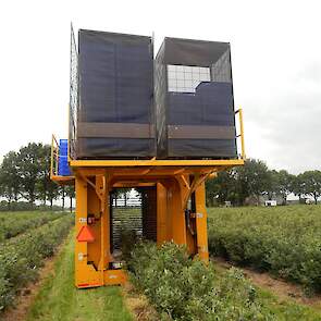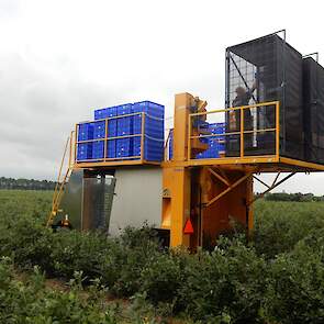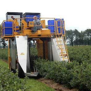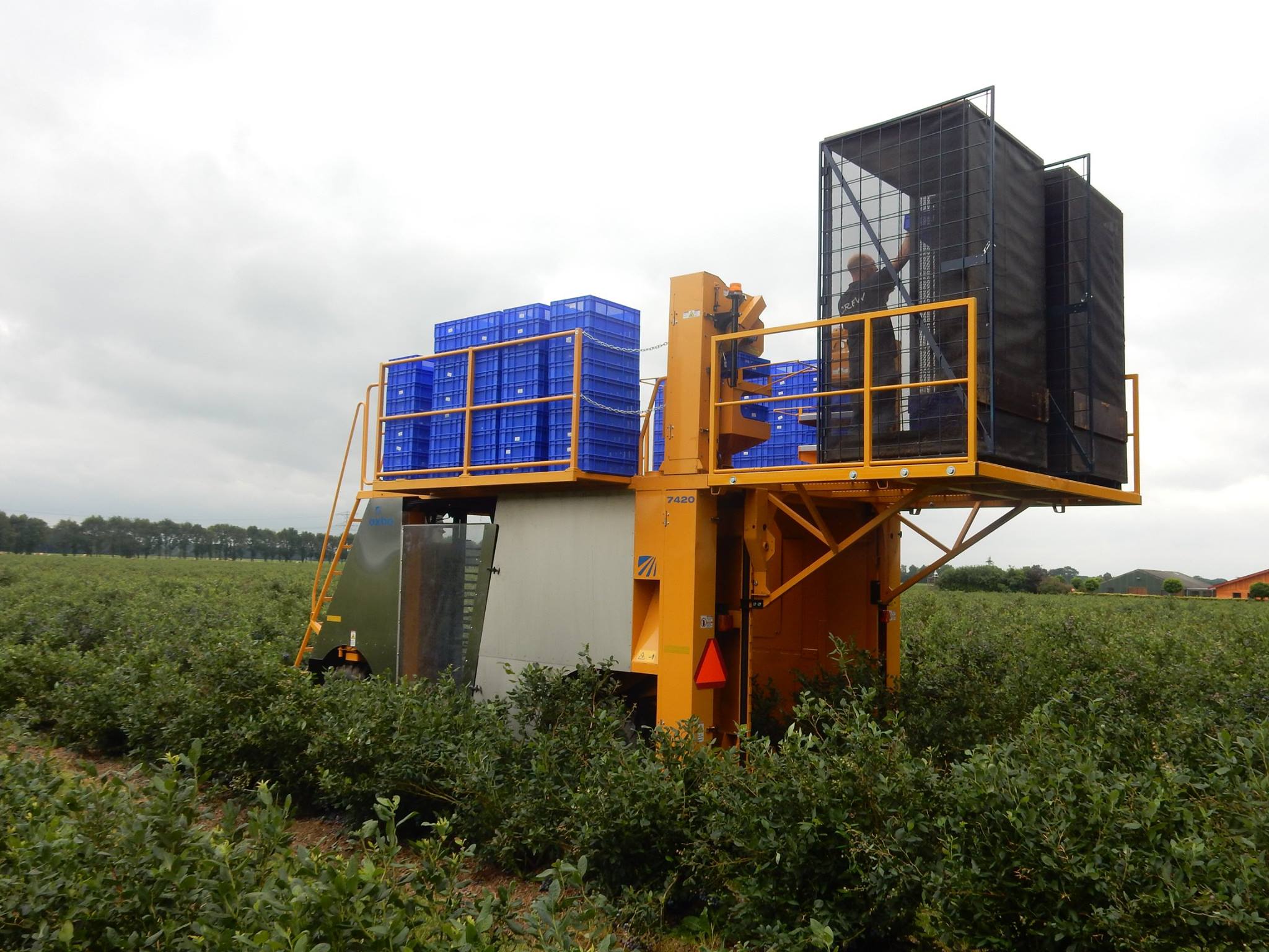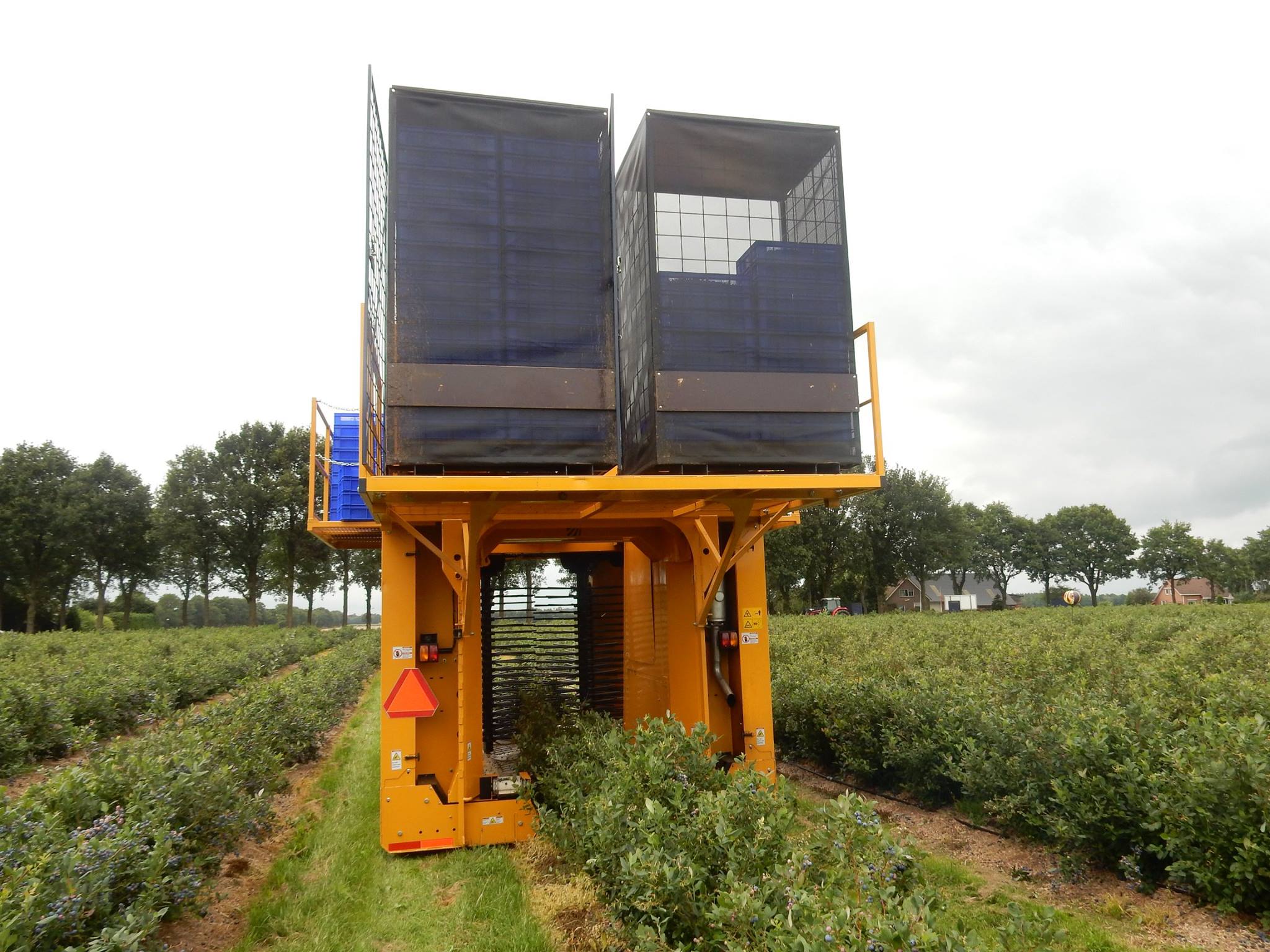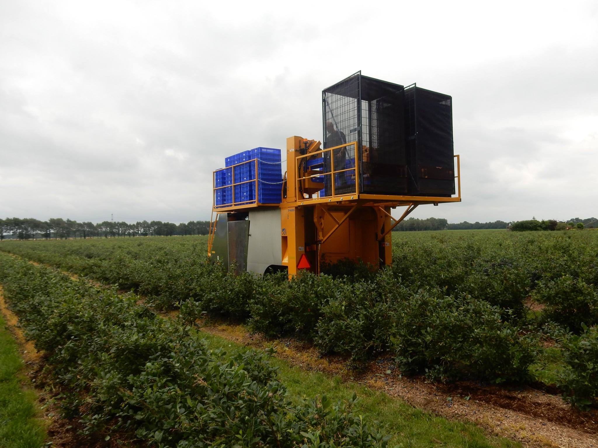 Blauwe bessen plukken met een Oxbo 7420 bij de Familie Hijken in Wachtum