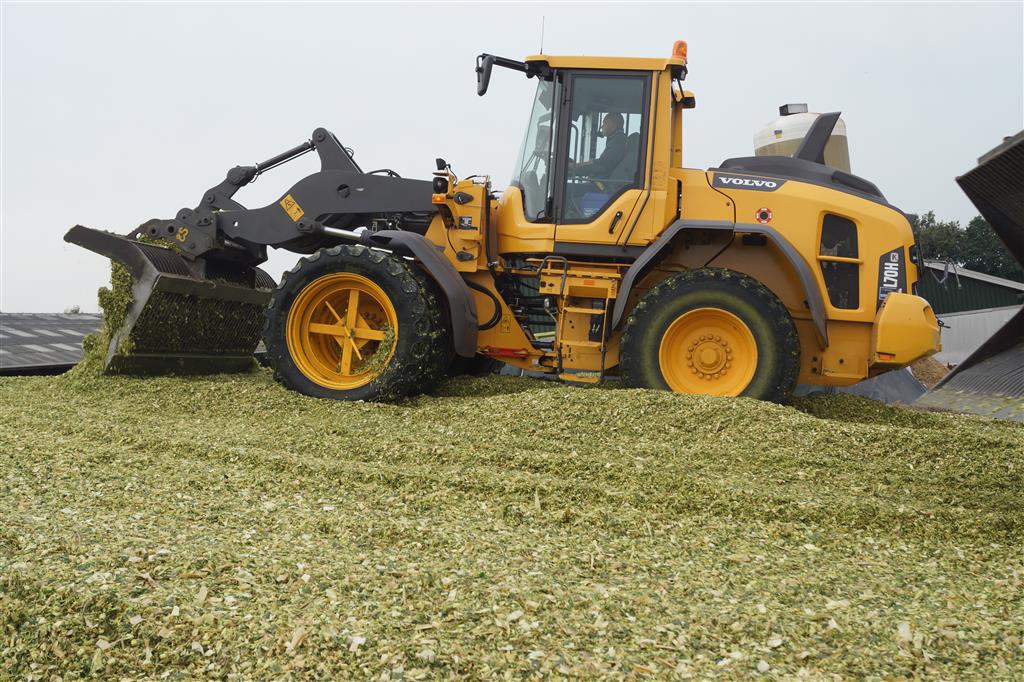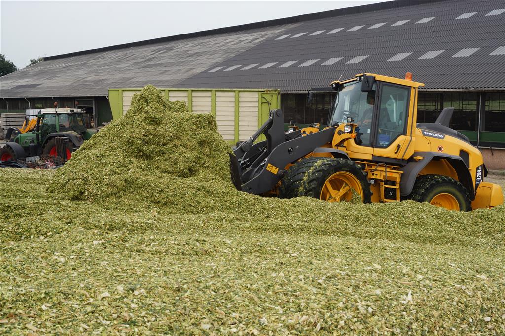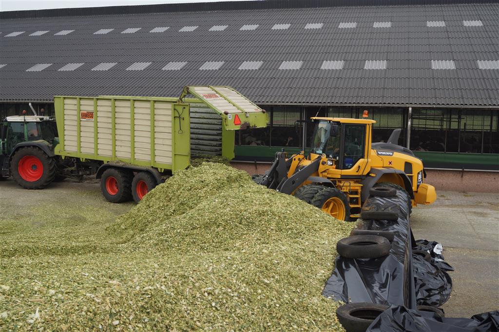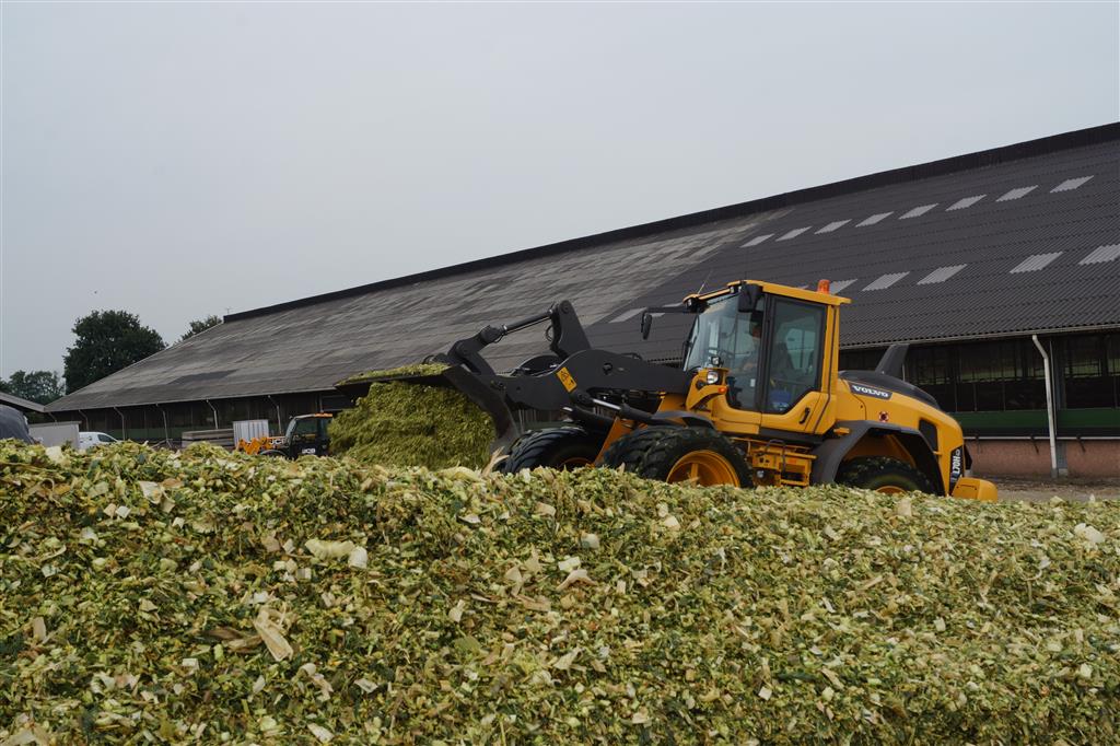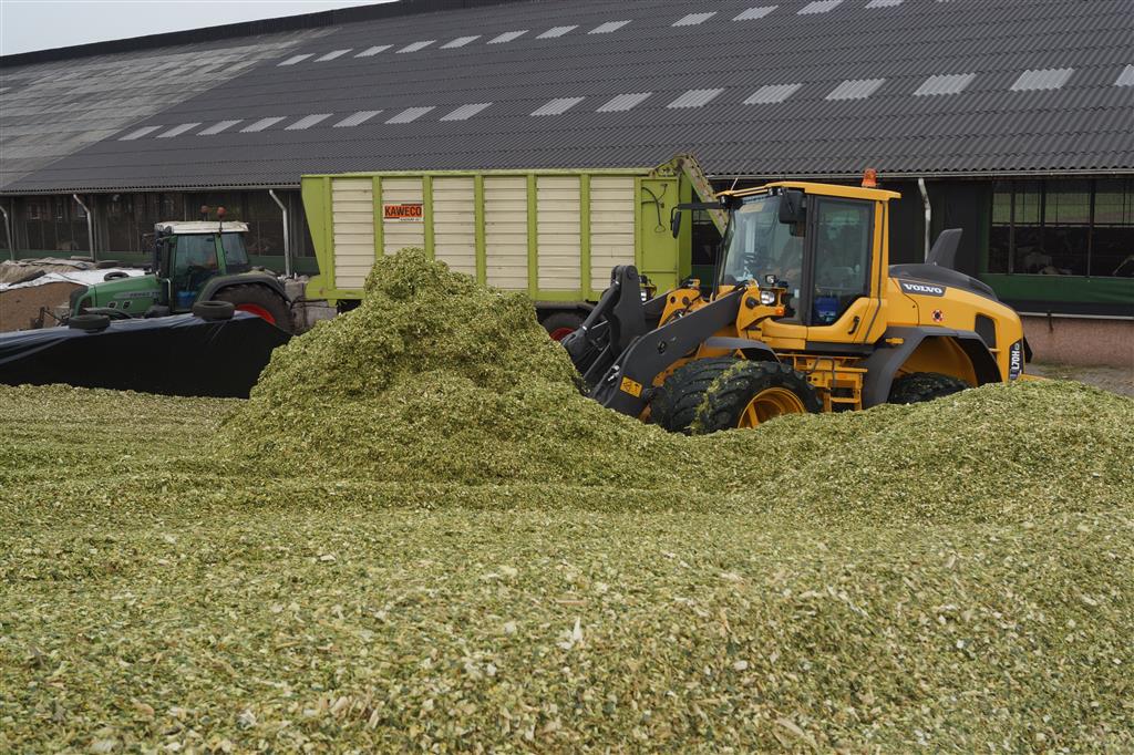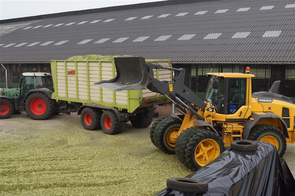 Volvo en Werklust maïsbult aanrijden bij Loonbedrijf Hartlief-Lammers B.V.