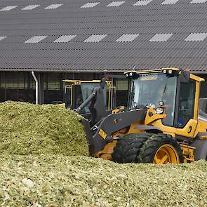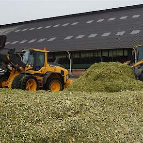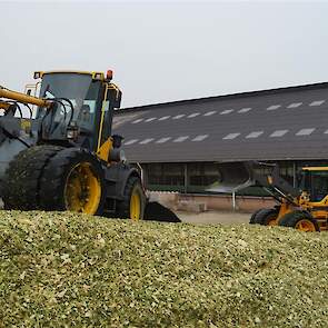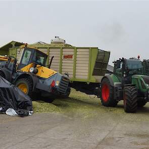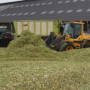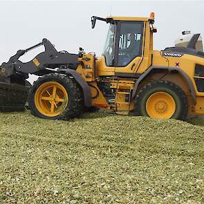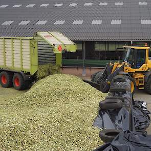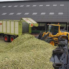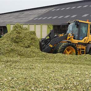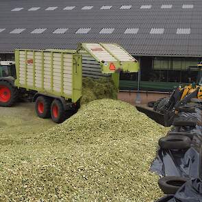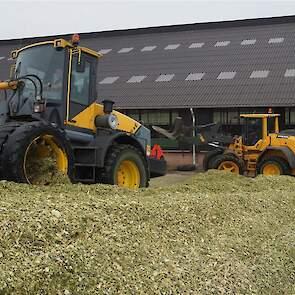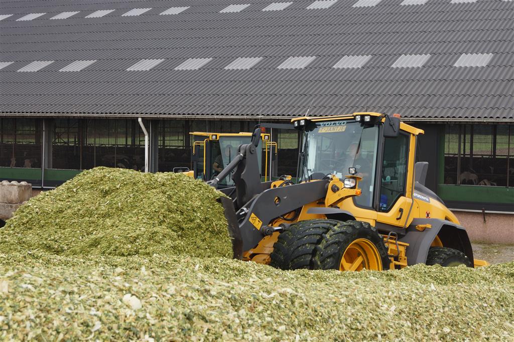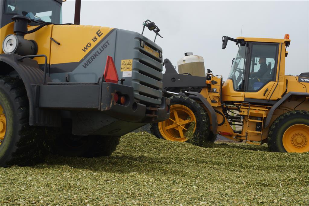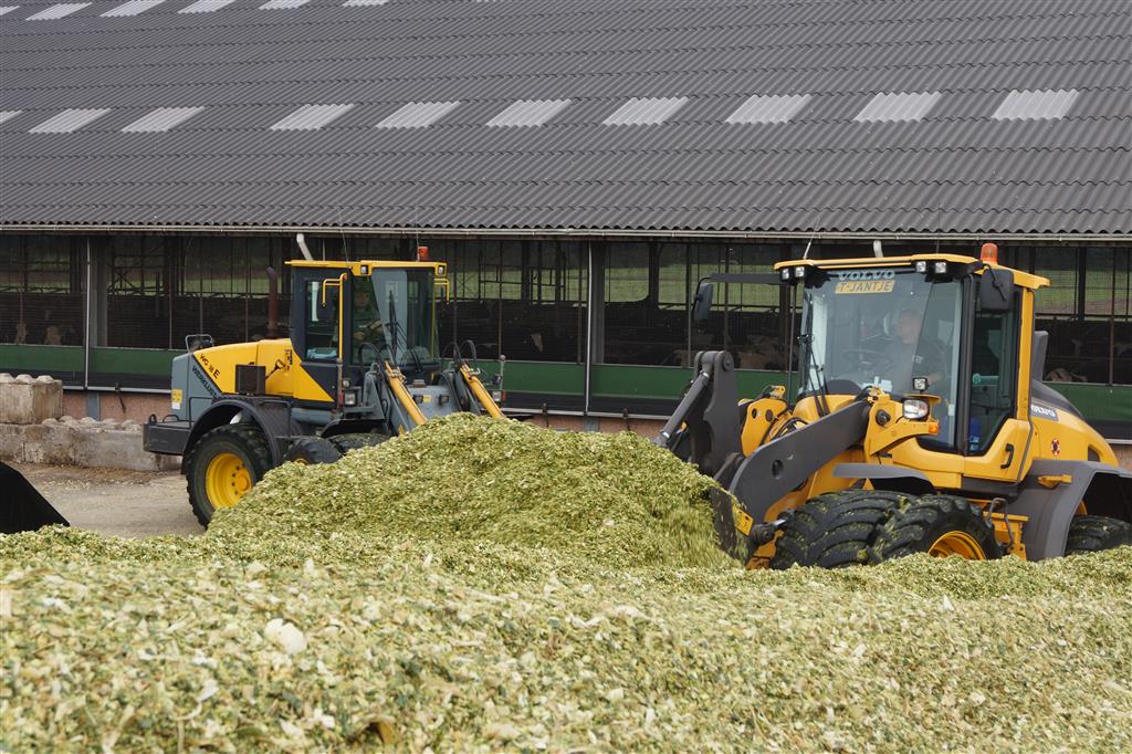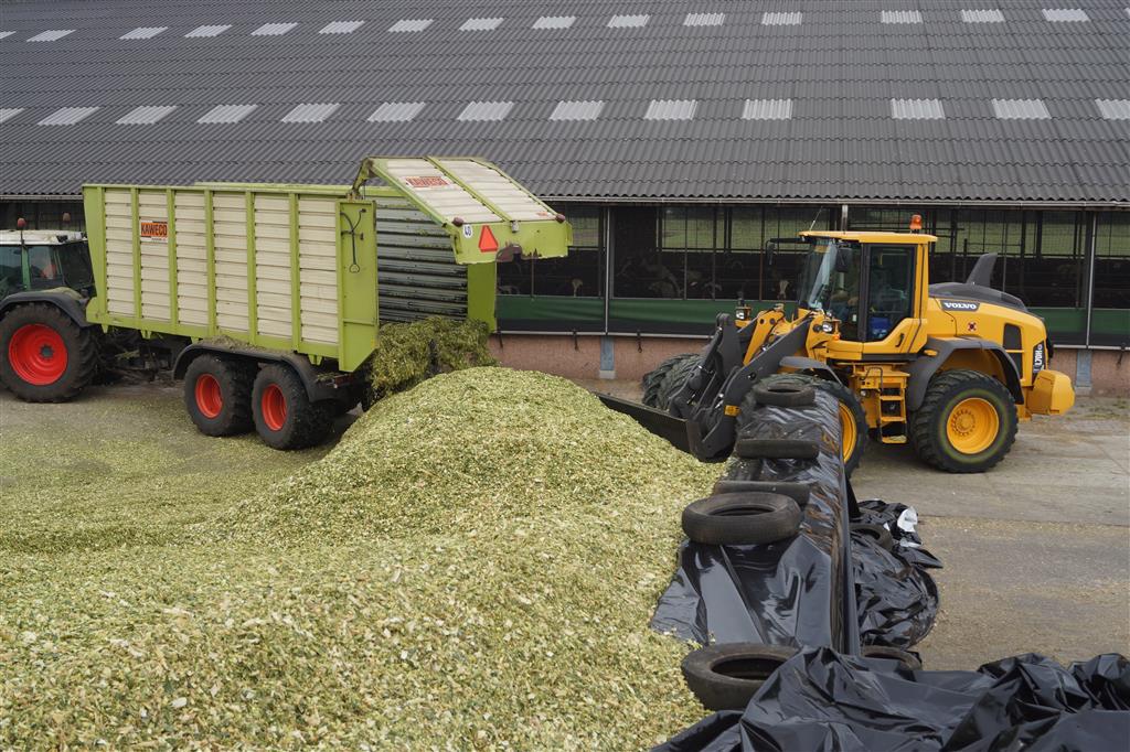 Volvo en Werklust maïsbult aanrijden bij Loonbedrijf Hartlief-Lammers B.V.