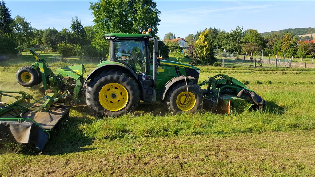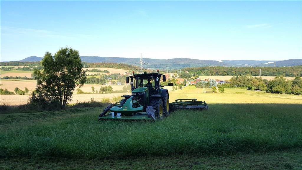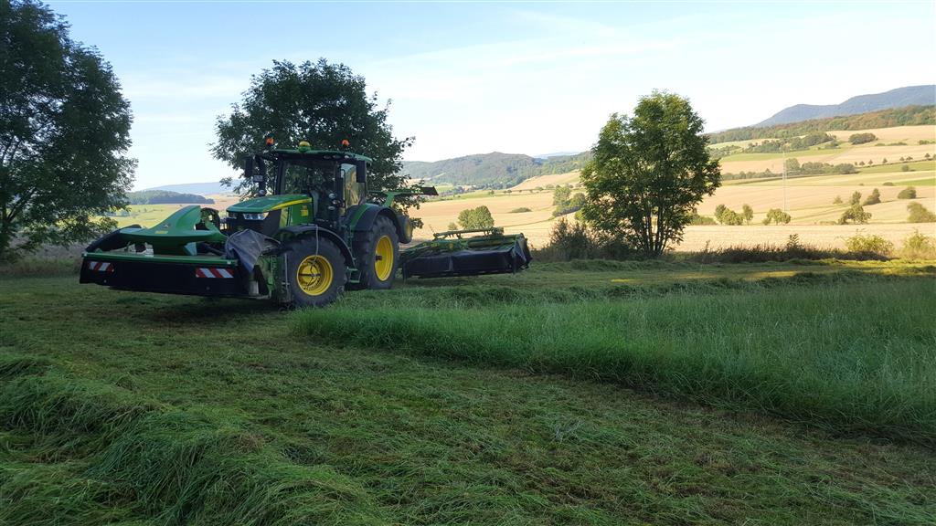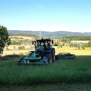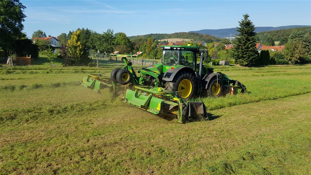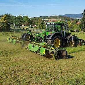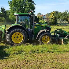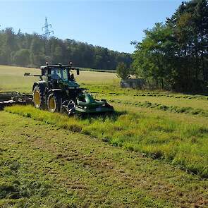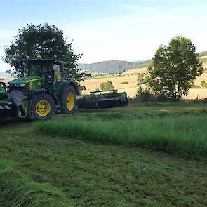 tijd te kunnen wegwerken. Rij afstanden lopen door schaalvergroting en versnippering van percelen op. Grote loonbedrijven kiezen vaak voor een triple maai-systeem met een zware dubbele maaier achter en een machine in de fronthef. Frontmaaiers zijn er in verschillende soorten. Tendens is voorop ook een zgn. 3 meter brede getrokken maaier omdat deze de contouren van het perceel beter volgt voor een beter maaibeeld.