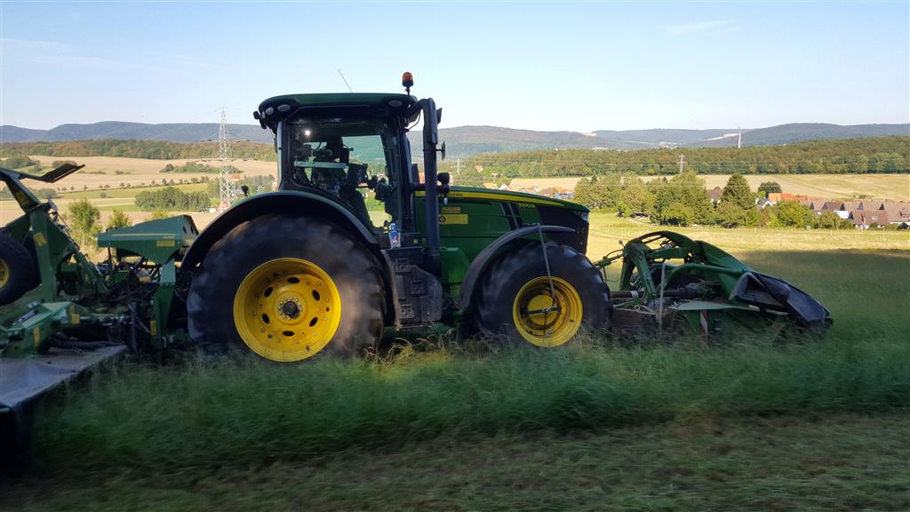 In sommige gevallen ontstaat er echter een bijkomende nadeel. Immers als de frontmaaier zn werk doet ontlast deze de fronthef en vooras van de trekker omdat de maaier in een eigen frame hangt, daarin op en neer beweegt en over de grond sleept. Ga je dan op de GPS maaien dan is de kans op dwaling en signaal verlies groot. Zeker wanneer het heuvelachtiger wordt en de ondergrond nog vochtig / nat is, is de kans groter dat het systeem niet goed werkt. Er zijn gebieden in Nederland waar dat een rol kan spelen. Kijken we naar de landen om ons heen dan is dit probleem ineens heel groot. Op steile hellingen is de drift zo groot dat het op GPS totaal niet gaat. Tot voor kort stond menig ingenieur voor een raadsel. Druk in het hydraulisch systeem van de maaier aanpassen, water in de voorbanden, oplossingen waar men vanaf de tekentafel mee kwam. Of de GPS dan maar helemaal uitzetten en op zicht verder maaien. Daar sta je dan met je modernste investering en scheef afgesleten, hobbelende voorbanden en alle verdere kosten en gevolgen van dien.