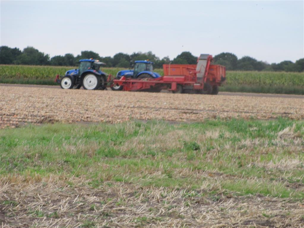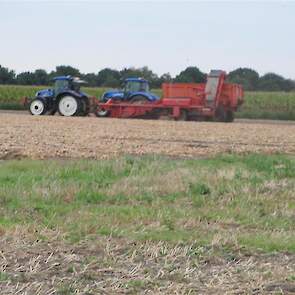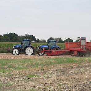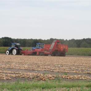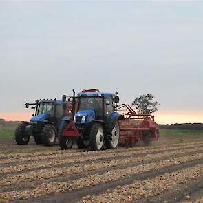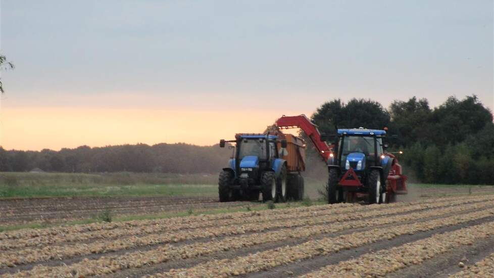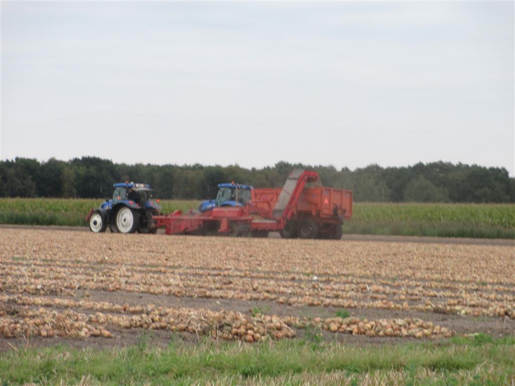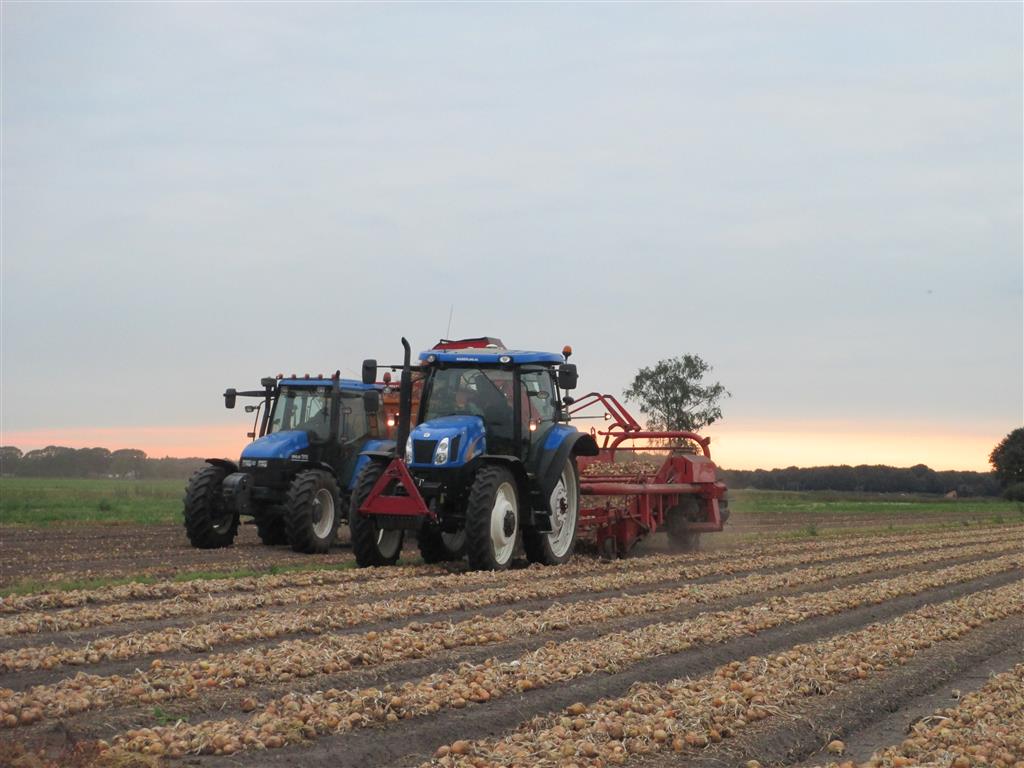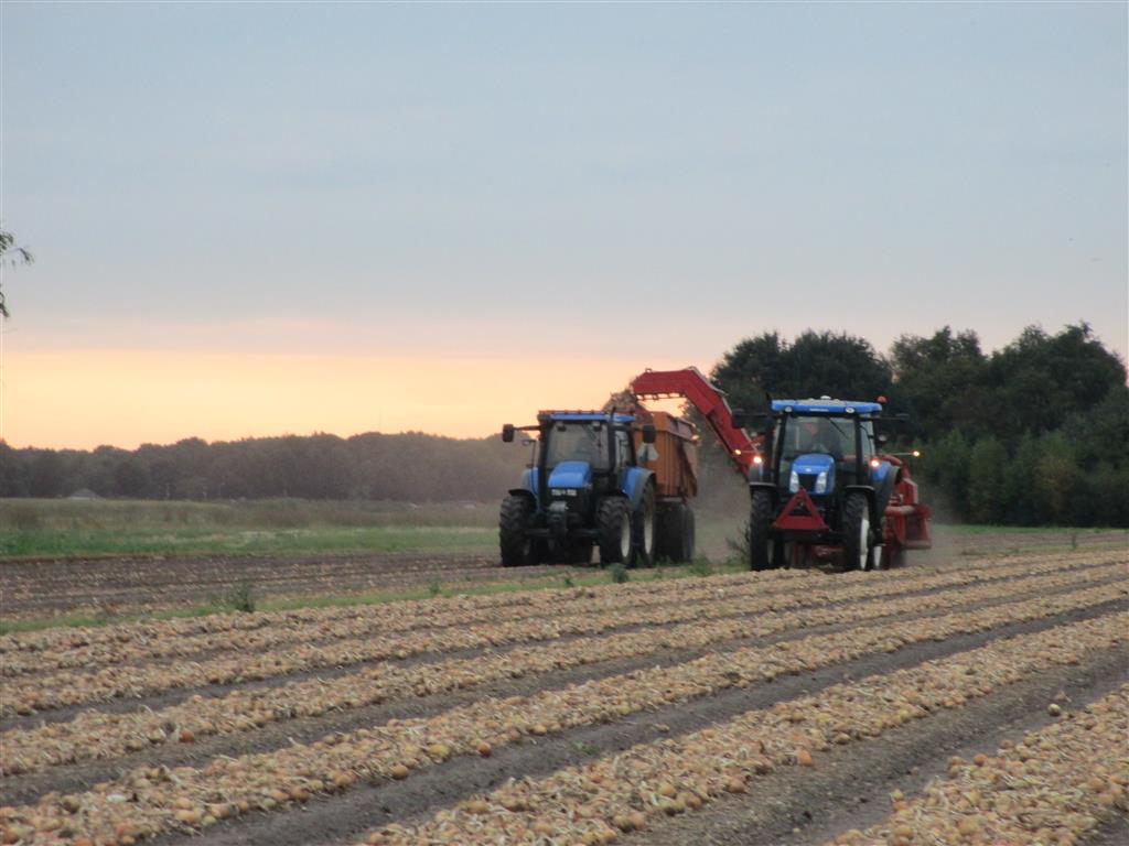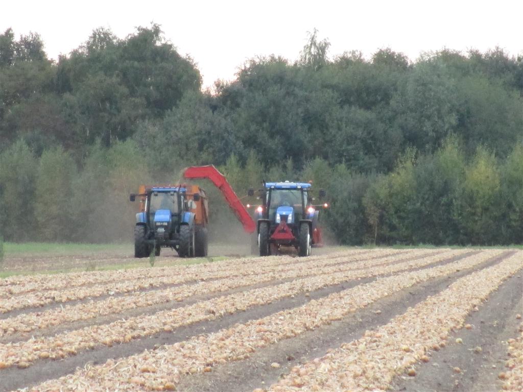 Uienladen met New Holland T6020 lader Grimme DL1500